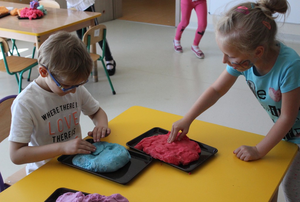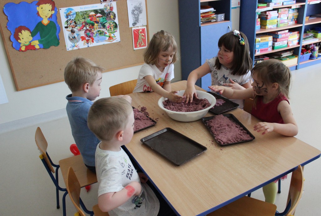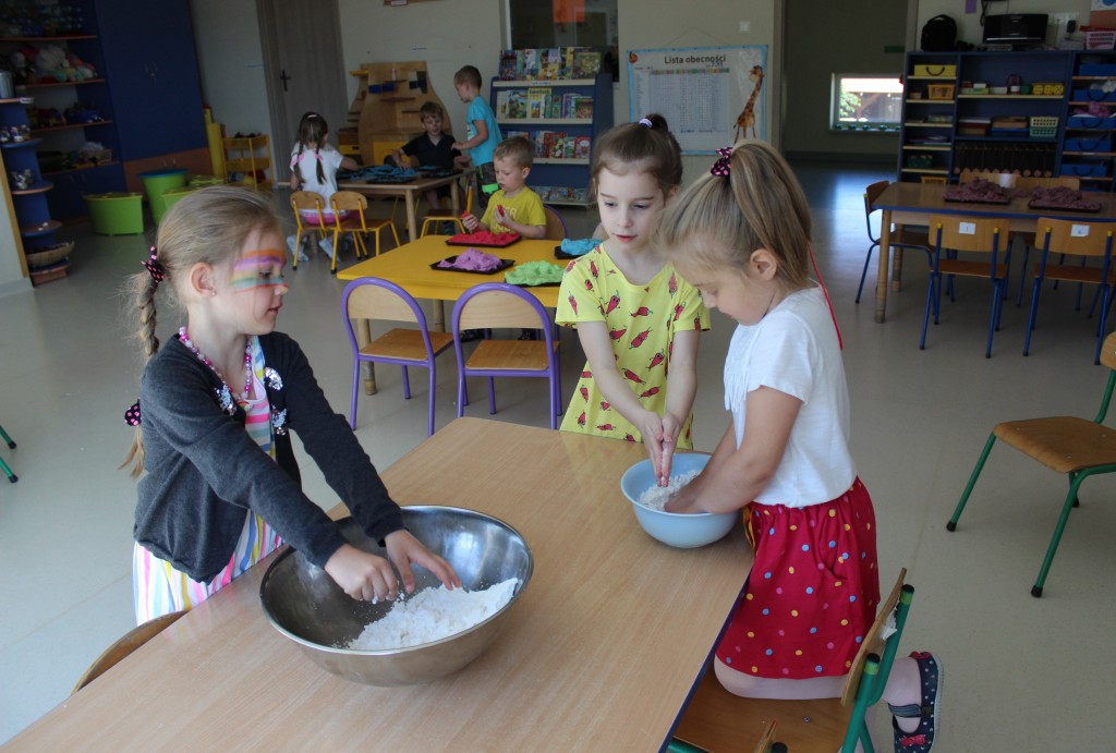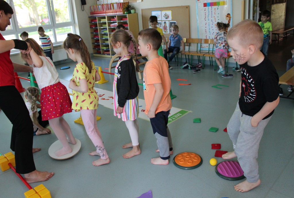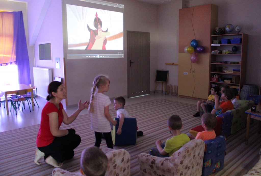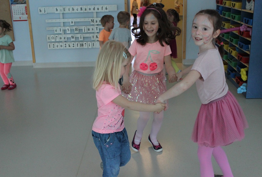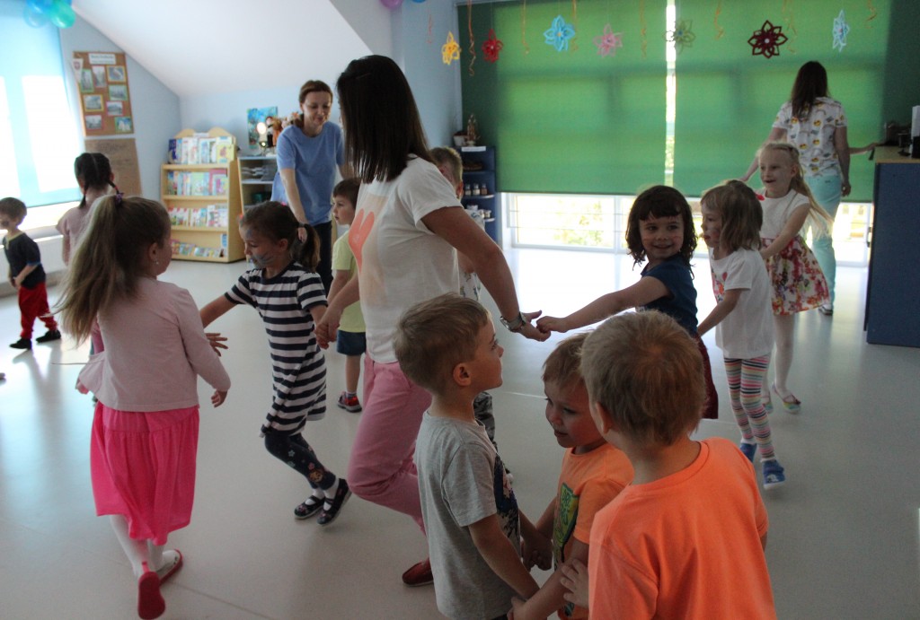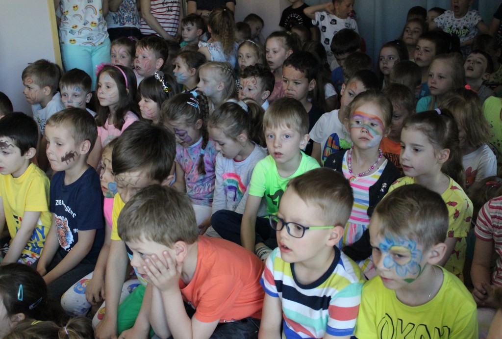 Kubusiowi przyjaciele również doczekali się swojego święta. W przeddzień 1 czerwca, przedszkole zamieniło się w wielką salę zabaw, tańców i kolebkę pięknych wspomnień. Zaraz po śniadaniu wszyscy zgromadziliśmy się w sali teatralnej, gdzie Pani Dyrektor wspólnie ze swoimi małymi pomocnikami zapoznała nas z nowymi przygodami przyjaciół z Krainy Siedmiu Dębów. Następnie wszyscy udali się na samodzielne zwiedzanie sali przedszkolnych. W każdej z nich czekała na dzieci inna atrakcja. Było kino bambino, sala muzyczna, ruchowa, konstrukcyjna a także zabawy z masami plastycznymi, rysowanie, balonowe cuda i malowanie twarzy.