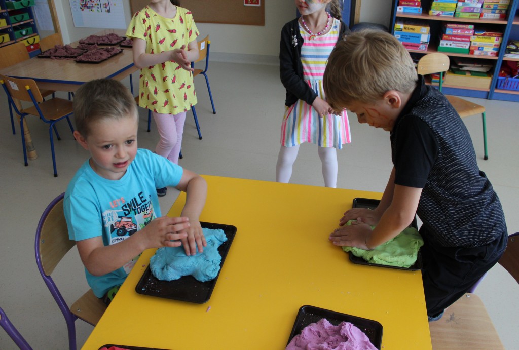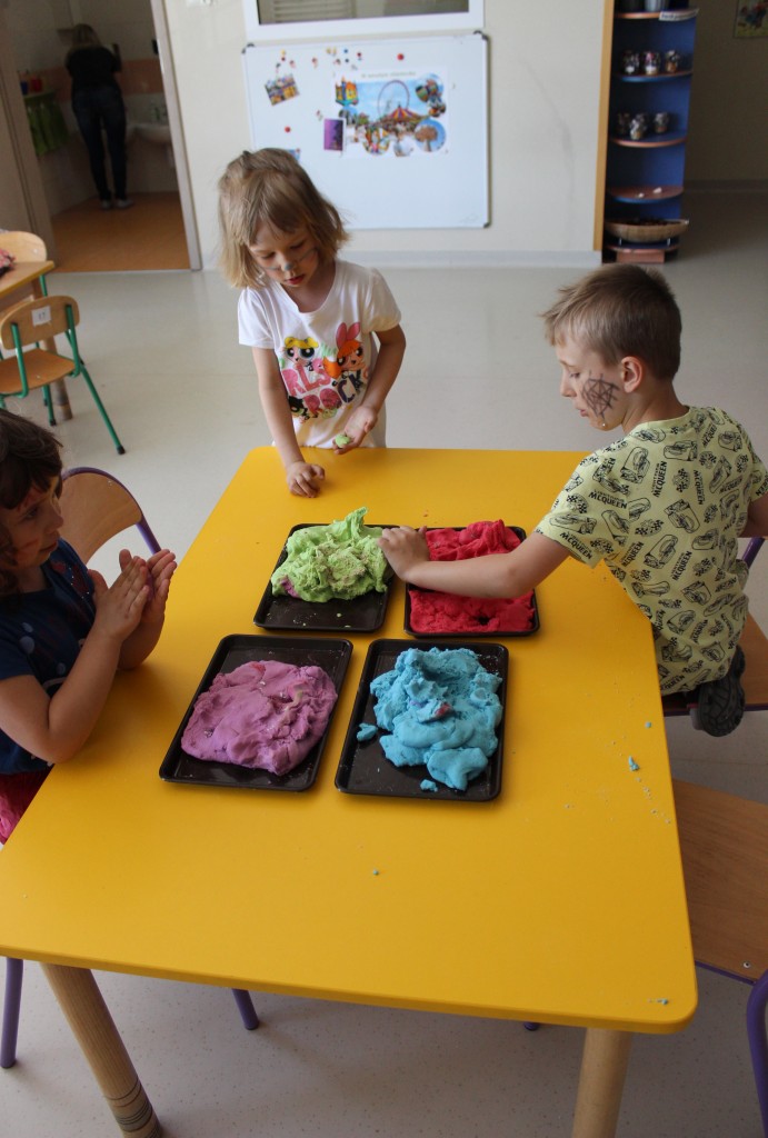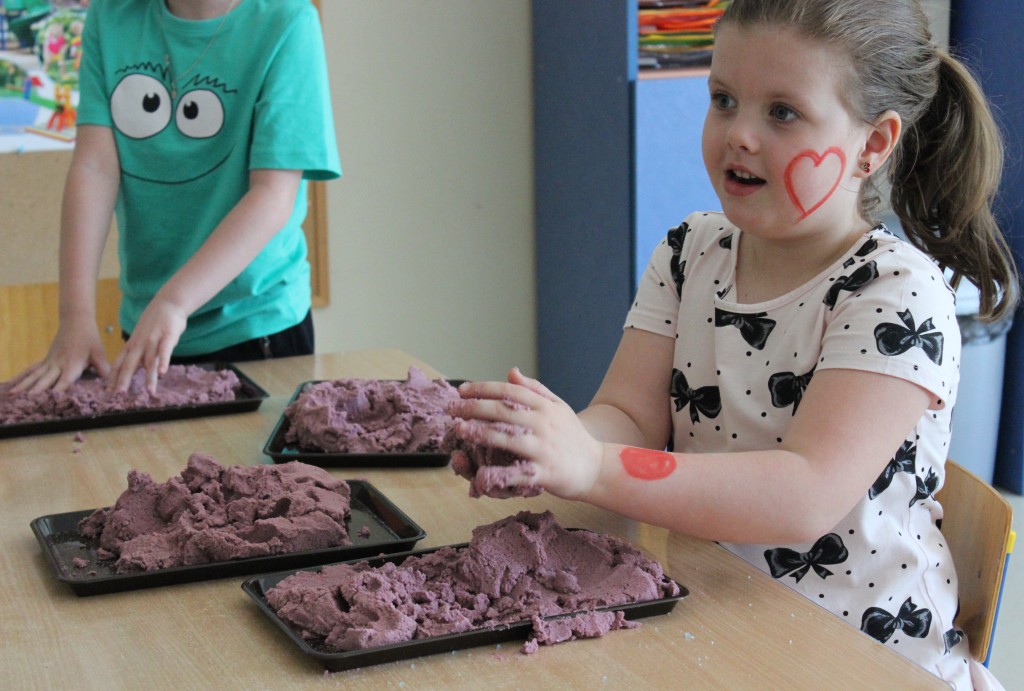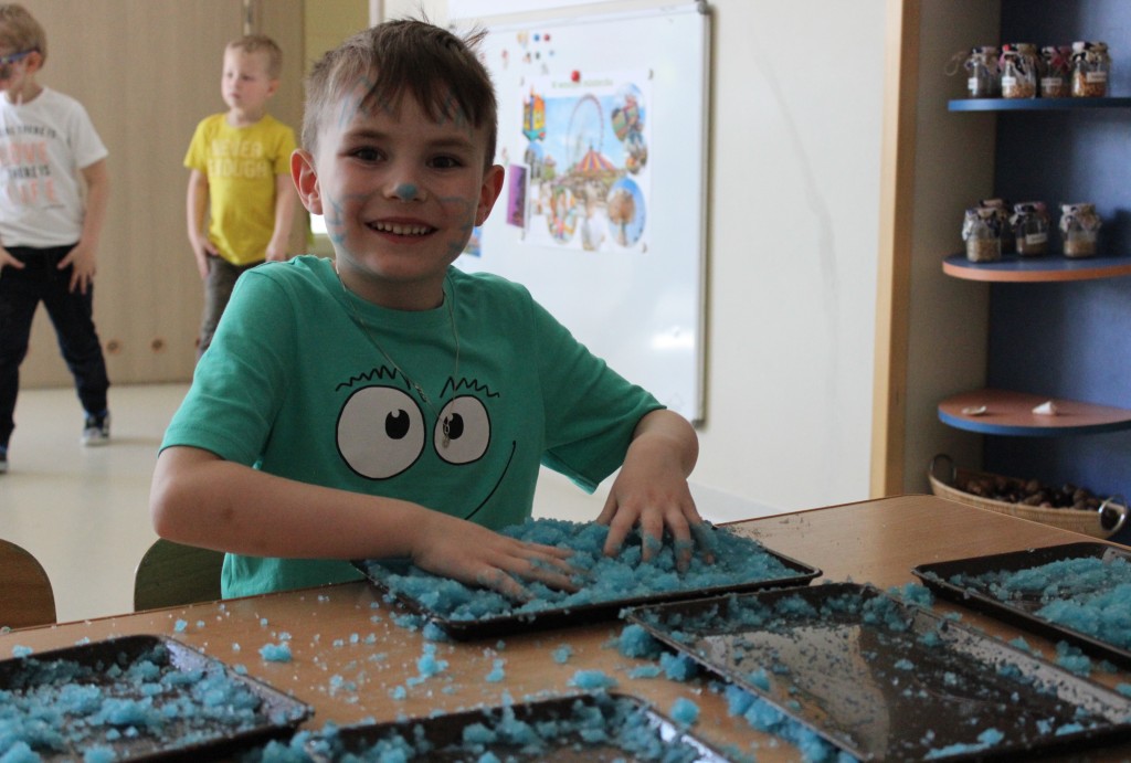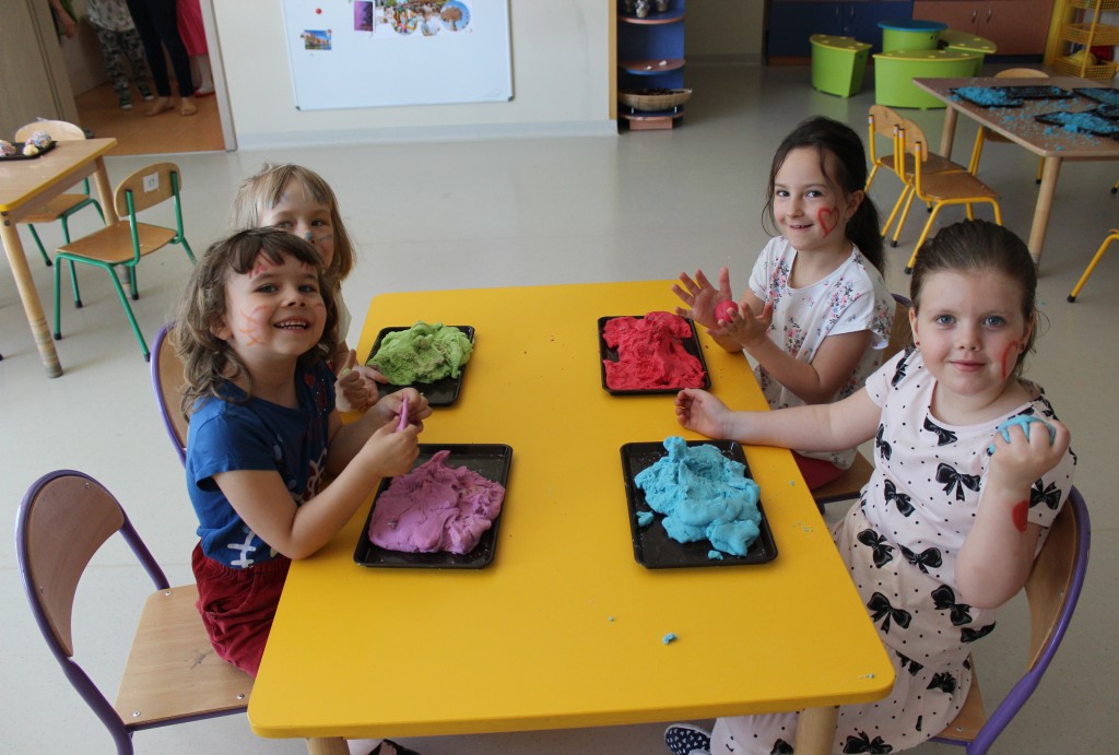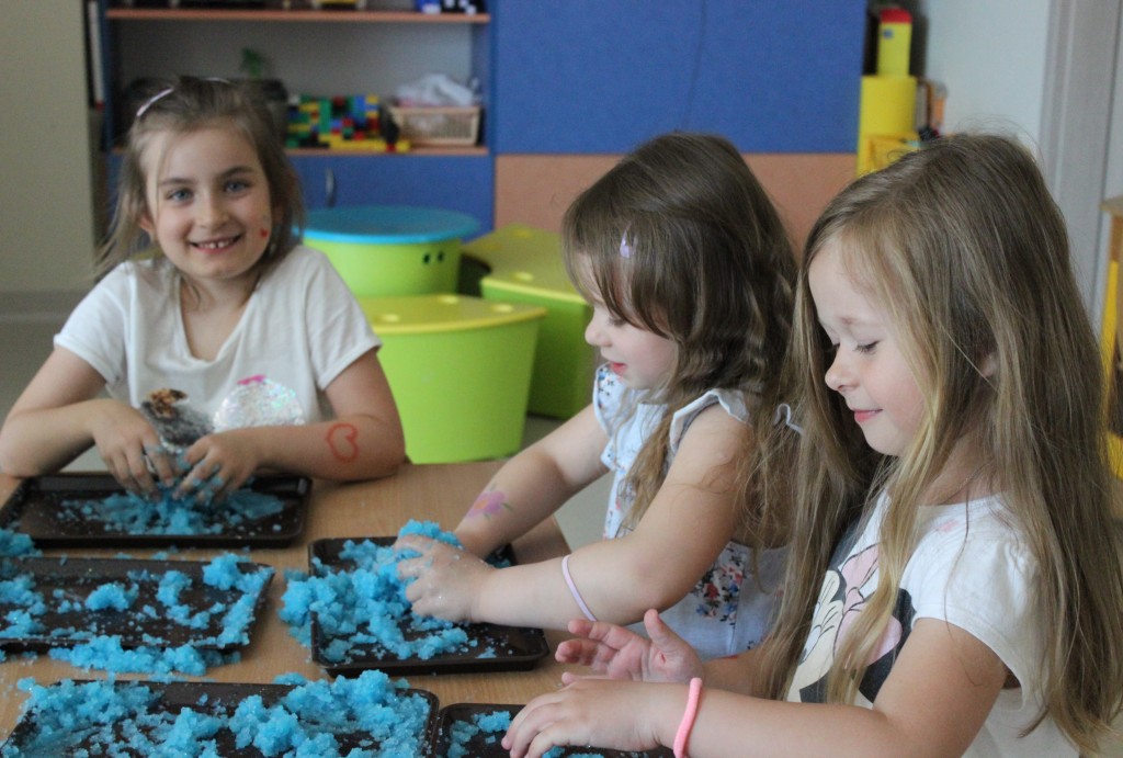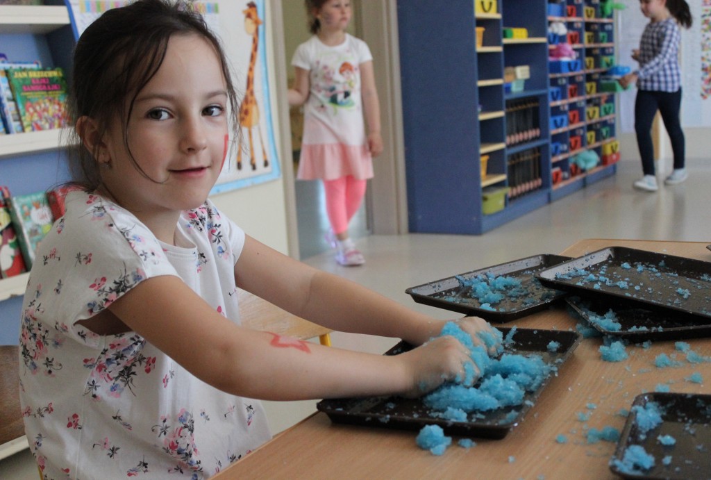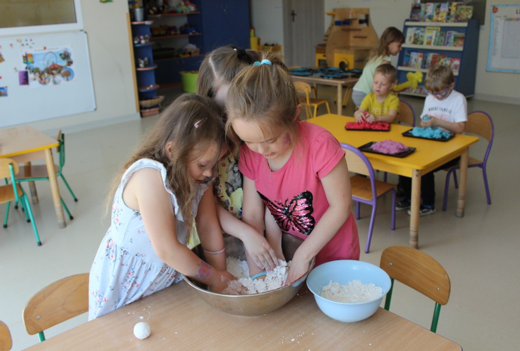 Kubusiowi przyjaciele również doczekali się swojego święta. W przeddzień 1 czerwca, przedszkole zamieniło się w wielką salę zabaw, tańców i kolebkę pięknych wspomnień. Zaraz po śniadaniu wszyscy zgromadziliśmy się w sali teatralnej, gdzie Pani Dyrektor wspólnie ze swoimi małymi pomocnikami zapoznała nas z nowymi przygodami przyjaciół z Krainy Siedmiu Dębów. Następnie wszyscy udali się na samodzielne zwiedzanie sali przedszkolnych. W każdej z nich czekała na dzieci inna atrakcja. Było kino bambino, sala muzyczna, ruchowa, konstrukcyjna a także zabawy z masami plastycznymi, rysowanie, balonowe cuda i malowanie twarzy.