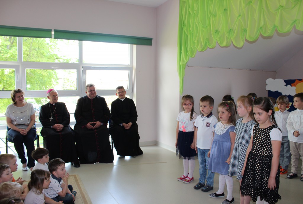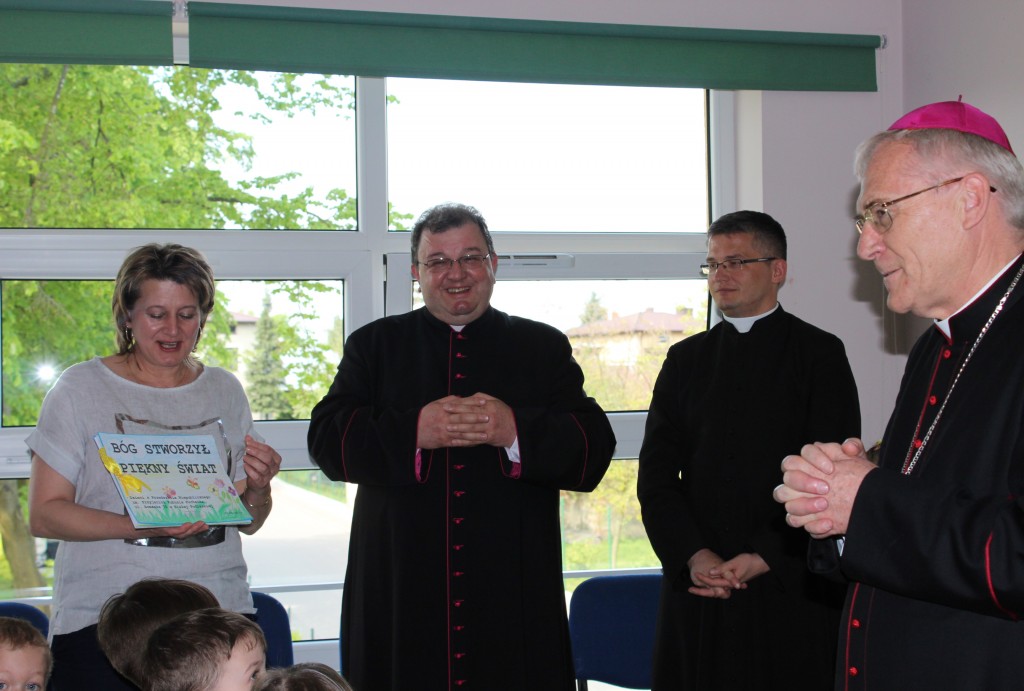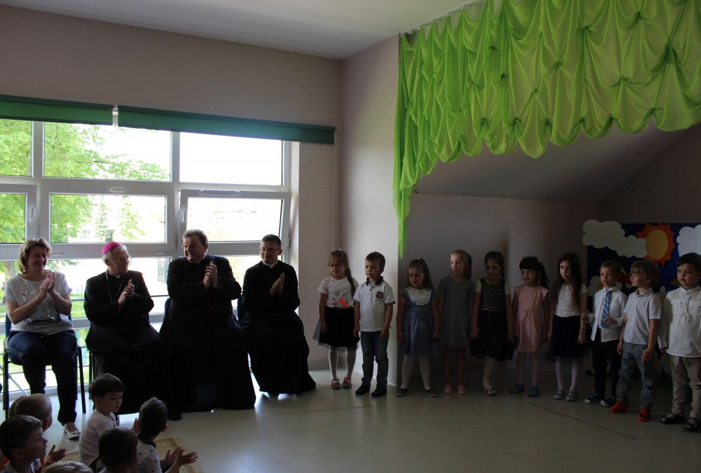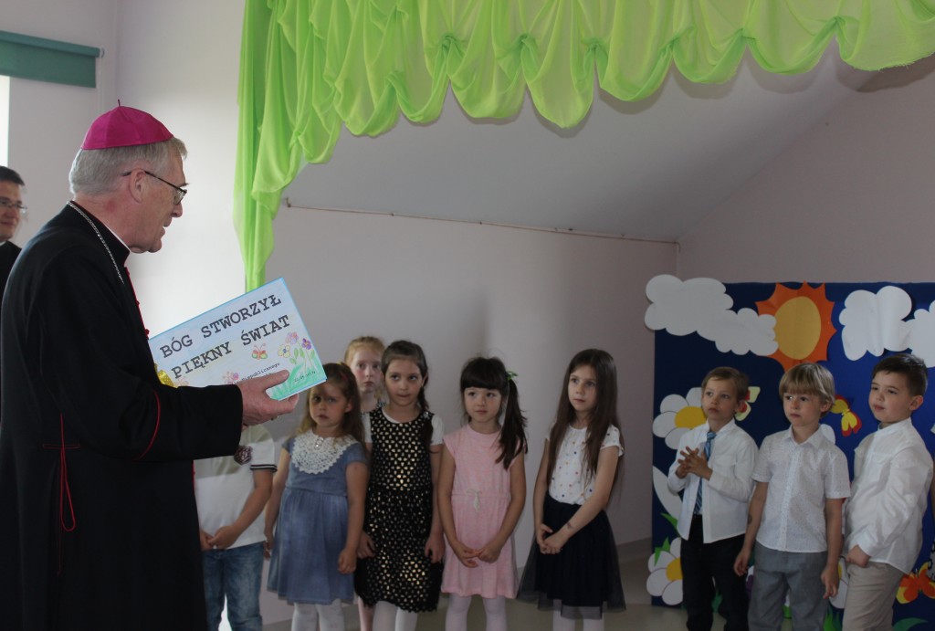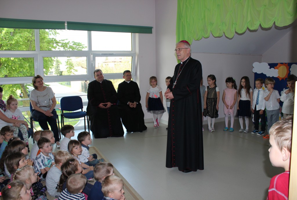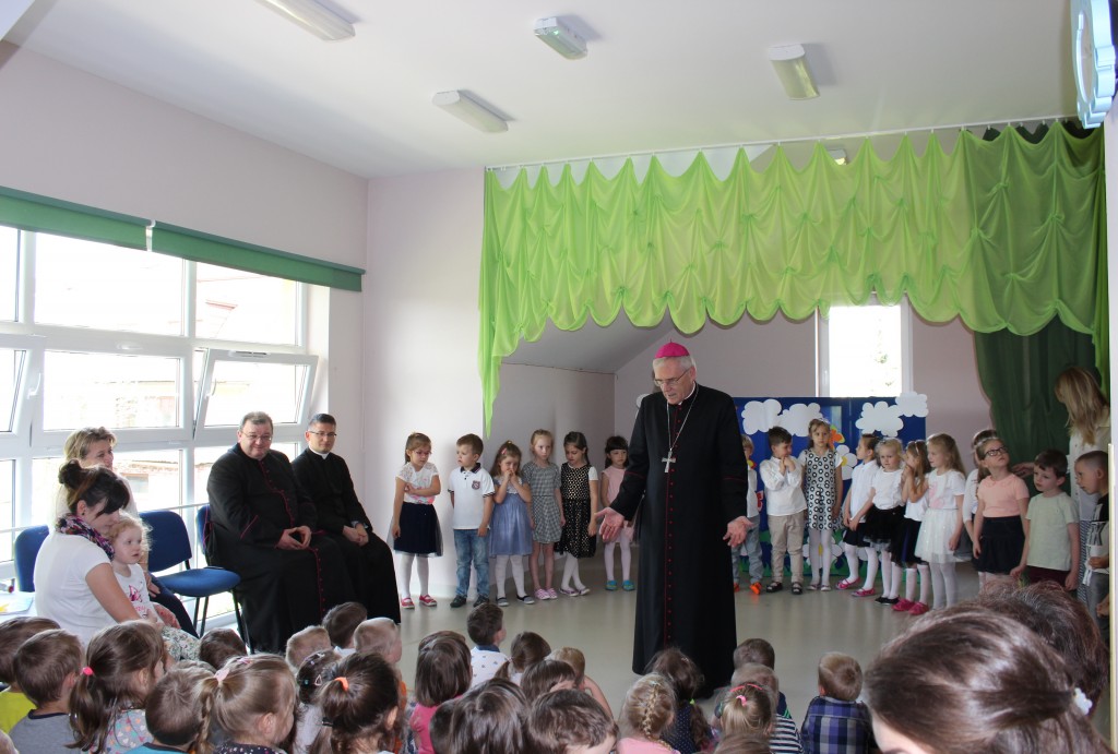 22 maja, ksiądz biskup odwiedził dwie kubusiowe placówki. Z tej okazji starsze grupy pod opieką swoich pań nauczycielek oraz siostry Aleksandry, zaprezentowały krótkie występy artystyczne oraz wręczyły księdzu biskupowi ręcznie wykonane pamiątkowe upominki. Nasz szczególny gość, poświęcił dzieciom czas na krótką rozmowę, podczas której zadawał im pytania dotyczące wiary i życia nią, po czym udzielił wszystkim bożego błogosławieństwa.