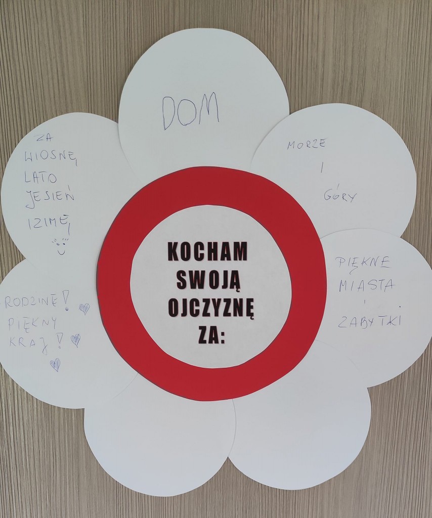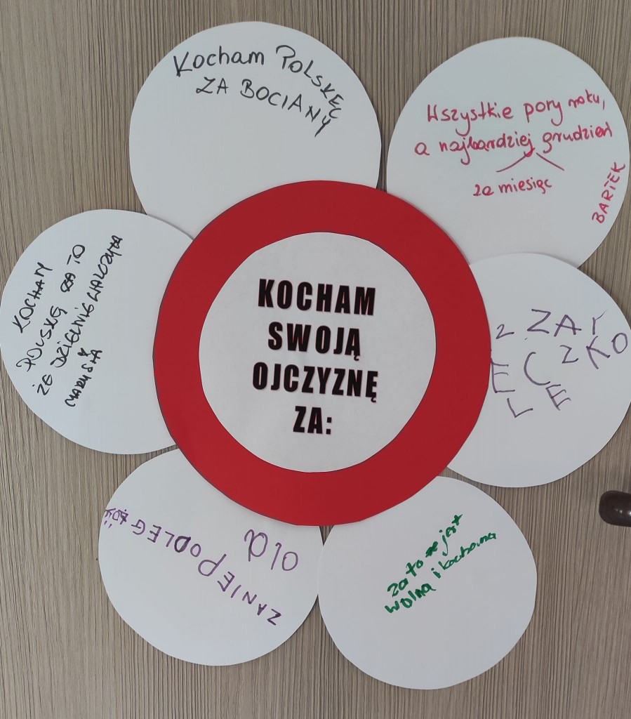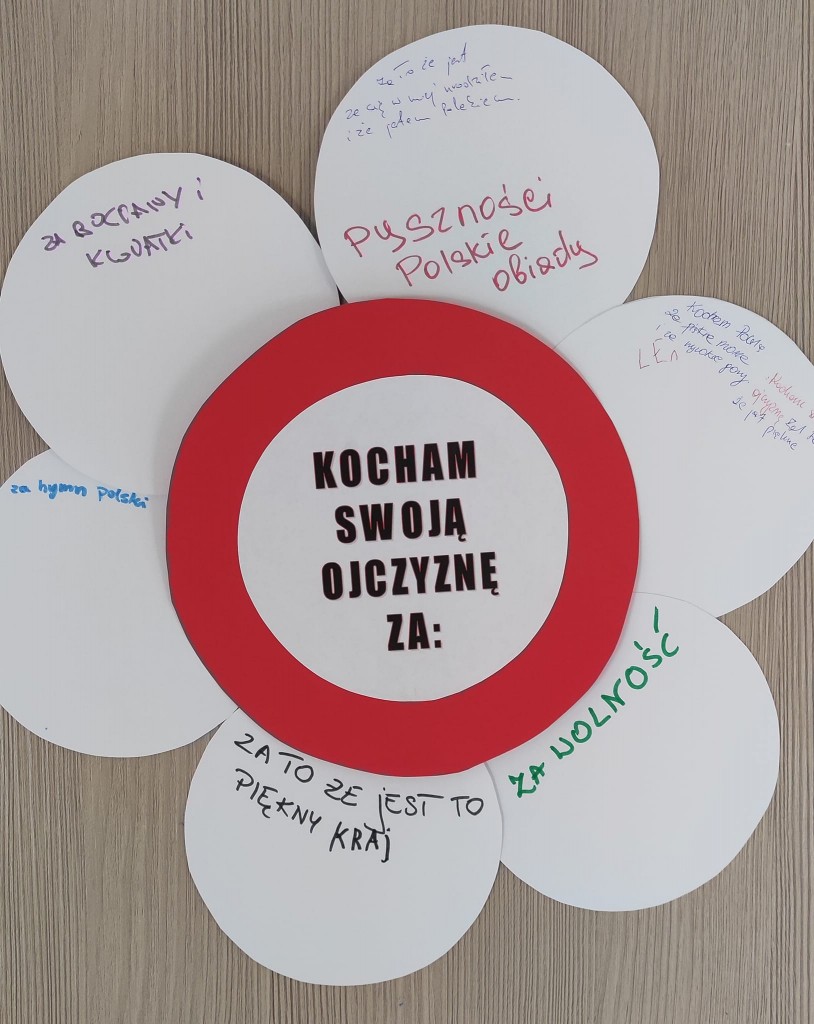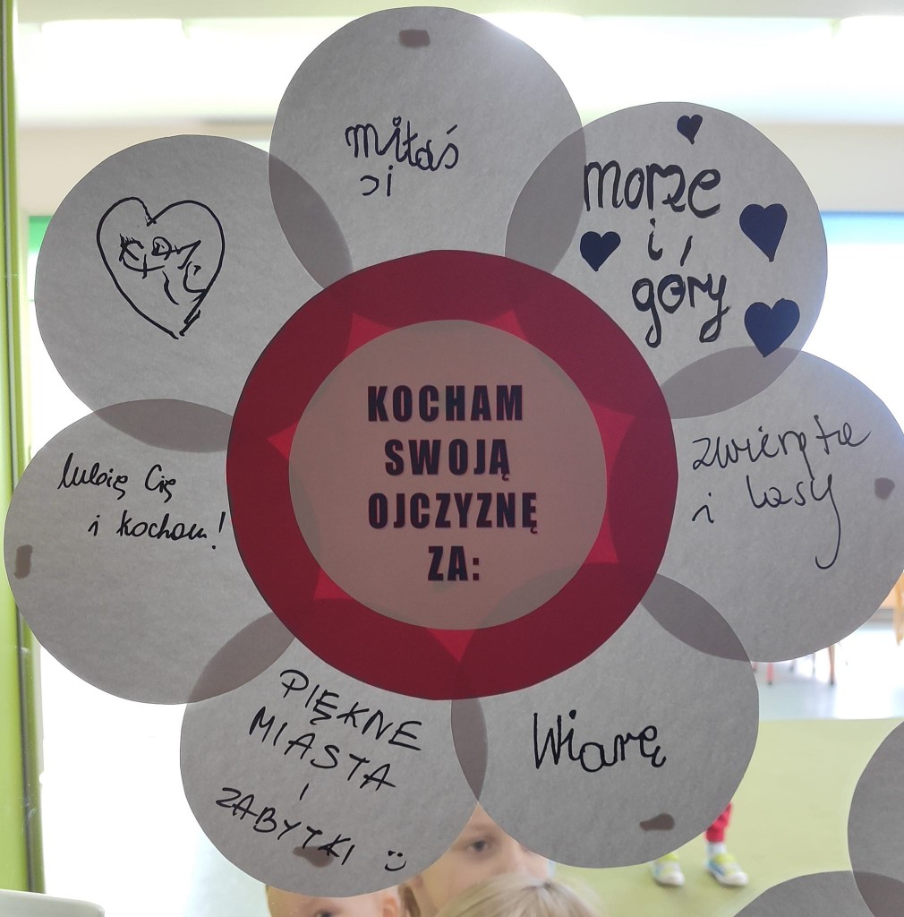 Nie trudno się domyśleć, że listopadowy Dzień Dobrego Słowa nawiązywał do bardzo ważnego dla nas Polaków święta - Święta Niepodległości i wiązał się z wyrabianiem u dzieci postaw patriotycznych szczególnie w zakresie określania tego za co kochamy Polskę.