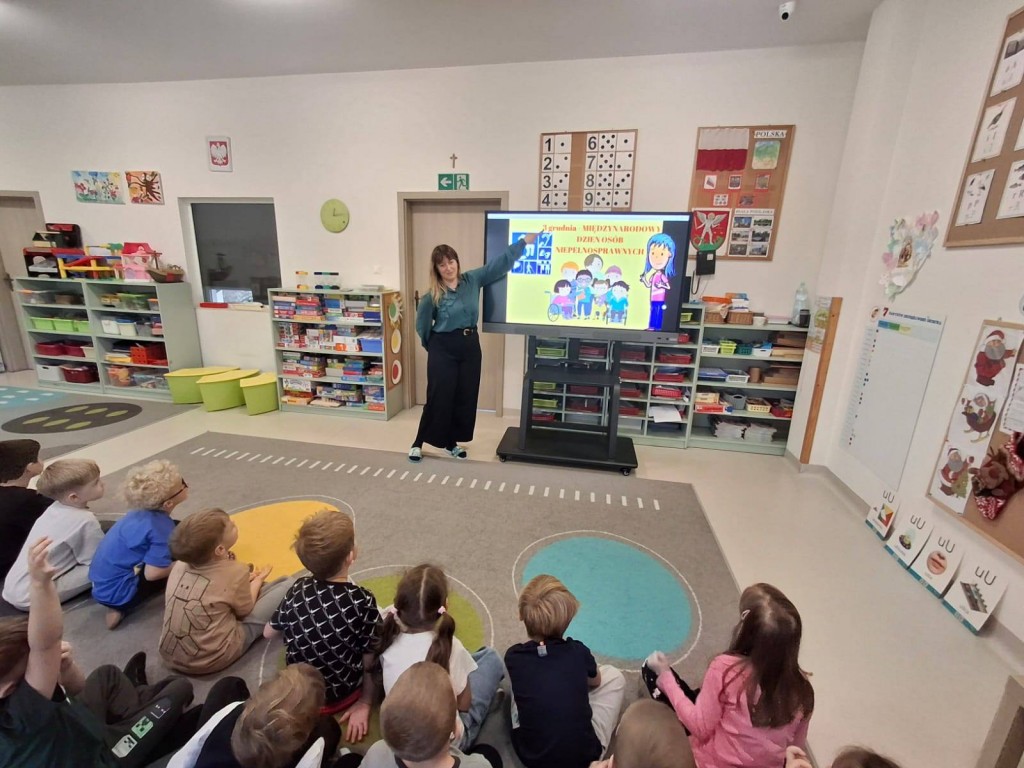 3 grudnia obchodziliśmy Międzynarodowy Dzień Osób Niepełnosprawnych. Nasi nauczyciele wspierający wraz z pedagogiem specjalnym i psychologiem, w dostosowany do możliwości dzieci sposób poruszyli zagadnienia różnych niepełnosprawności. Podczas tych działań dzieci wykazały się bogatą wiedzą w tym zakresie oraz wysokim poziomem empatii. Empatia ta jest bardzo mocno widoczna  podczas codziennych kontaktów z dziećmi niepełnosprawnymi, które uczęszczają do przedszkola.