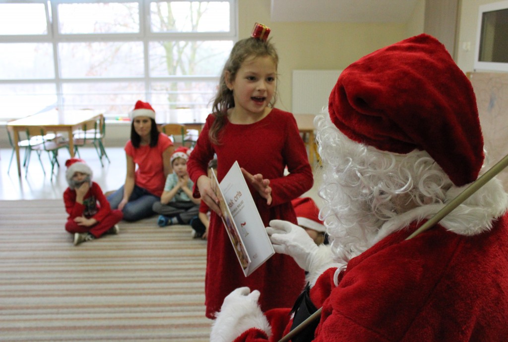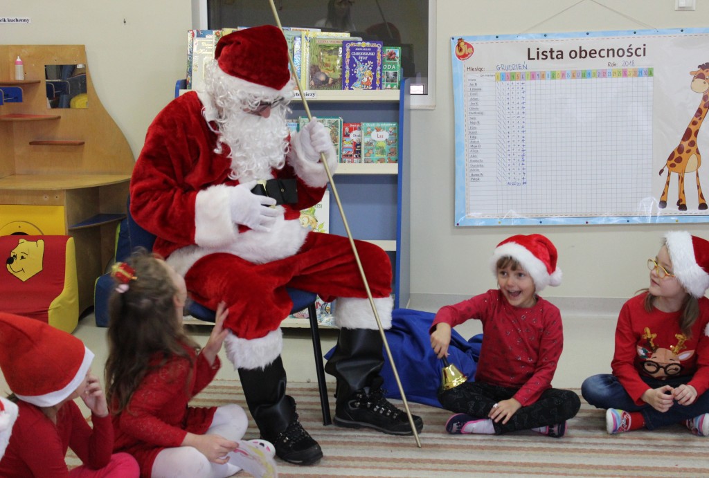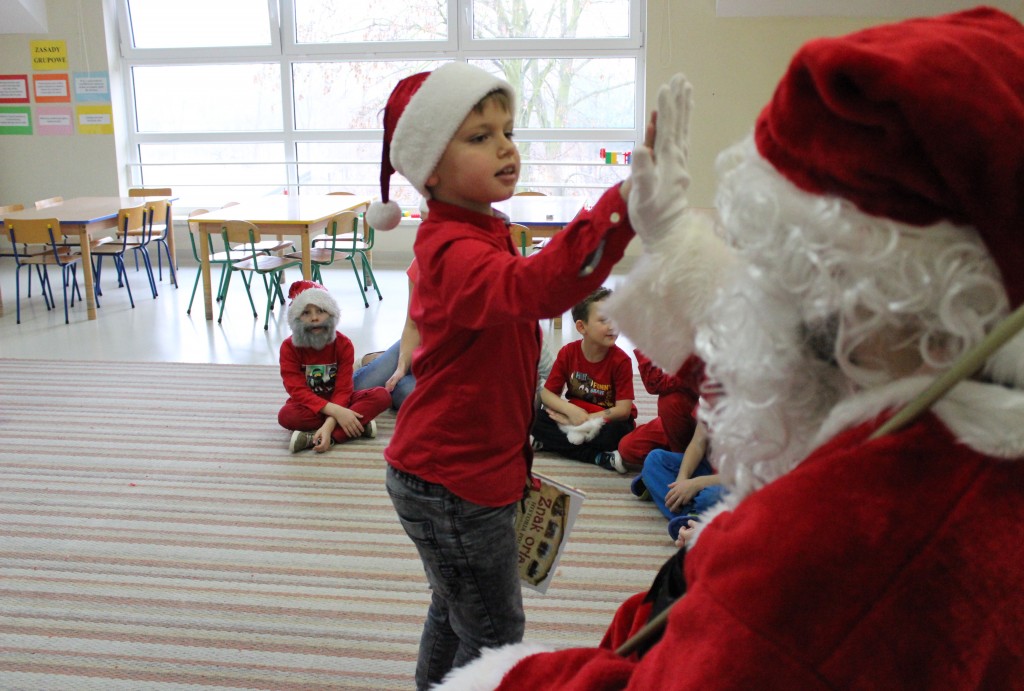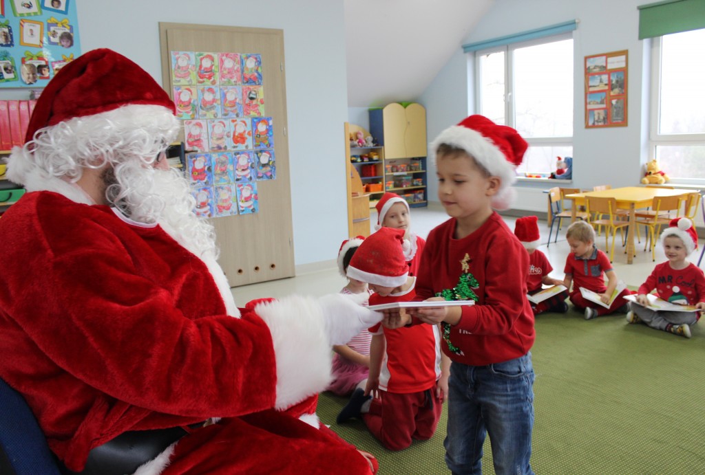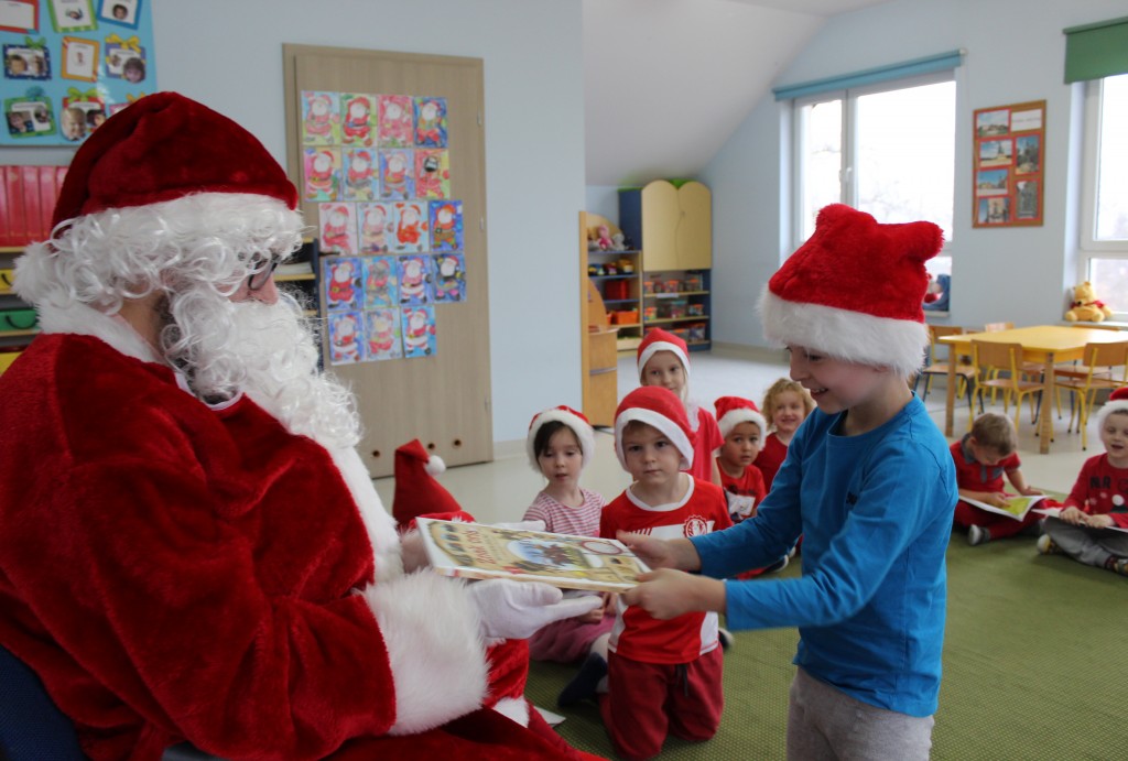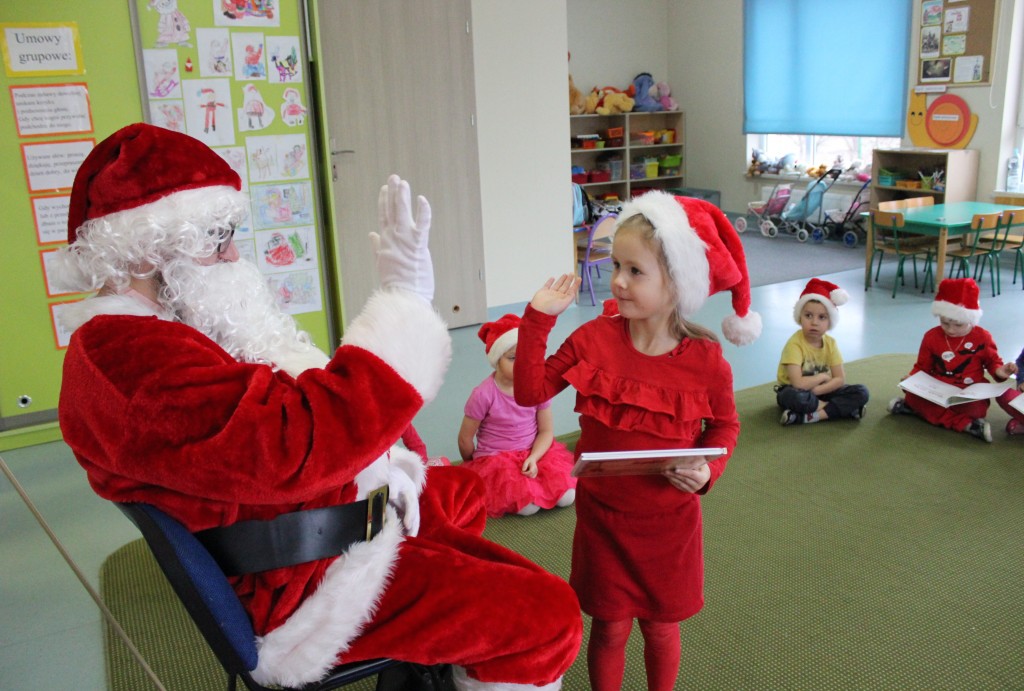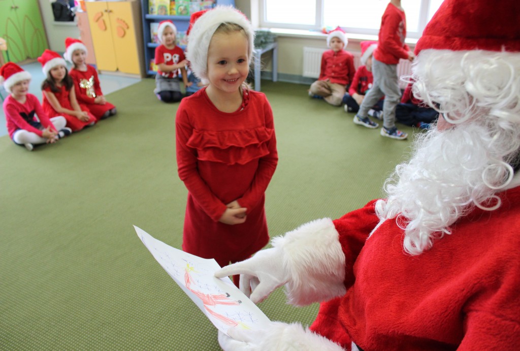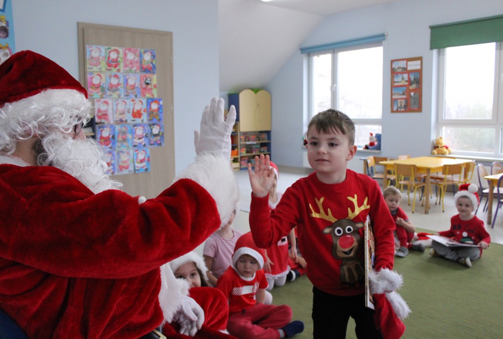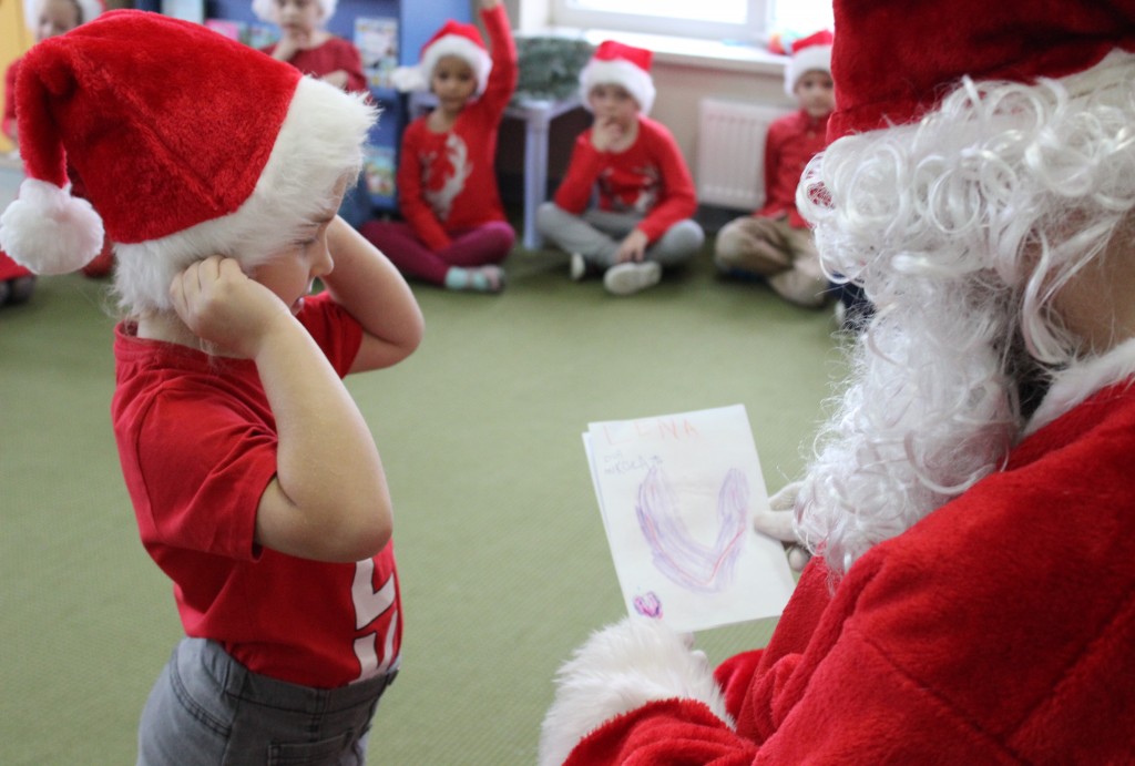 Każda z grup przygotowała mu piosenkę a najodważniejsi recytowali nawet wierszyki. Mikołaj otrzymał od dzieci mnóstwo laurek, listów, sugestii co do prezentów na Boże Narodzenie, ale przede wszystkim ogrom wdzięczności za to, że jest i nie zapomniał o nich w nocy. Do naszego przedszkola Mikołaj również przybył z workiem pełnym prezentów, które wywołały moc uśmiechów. Trudno było nam rozstać się z Mikołajem, ale wierzymy że za sprawą naszych dobrych uczynków powróci raz jeszcze w wieczór wigilijny spełniając kolejne marzenia.