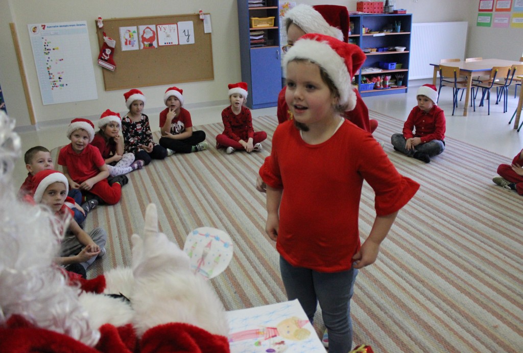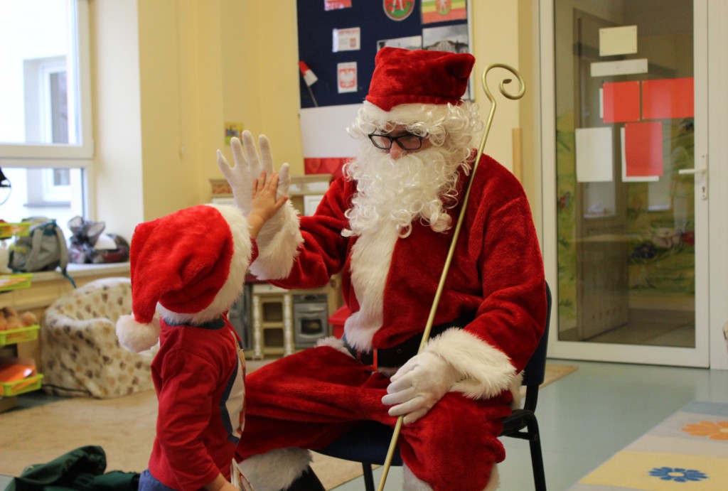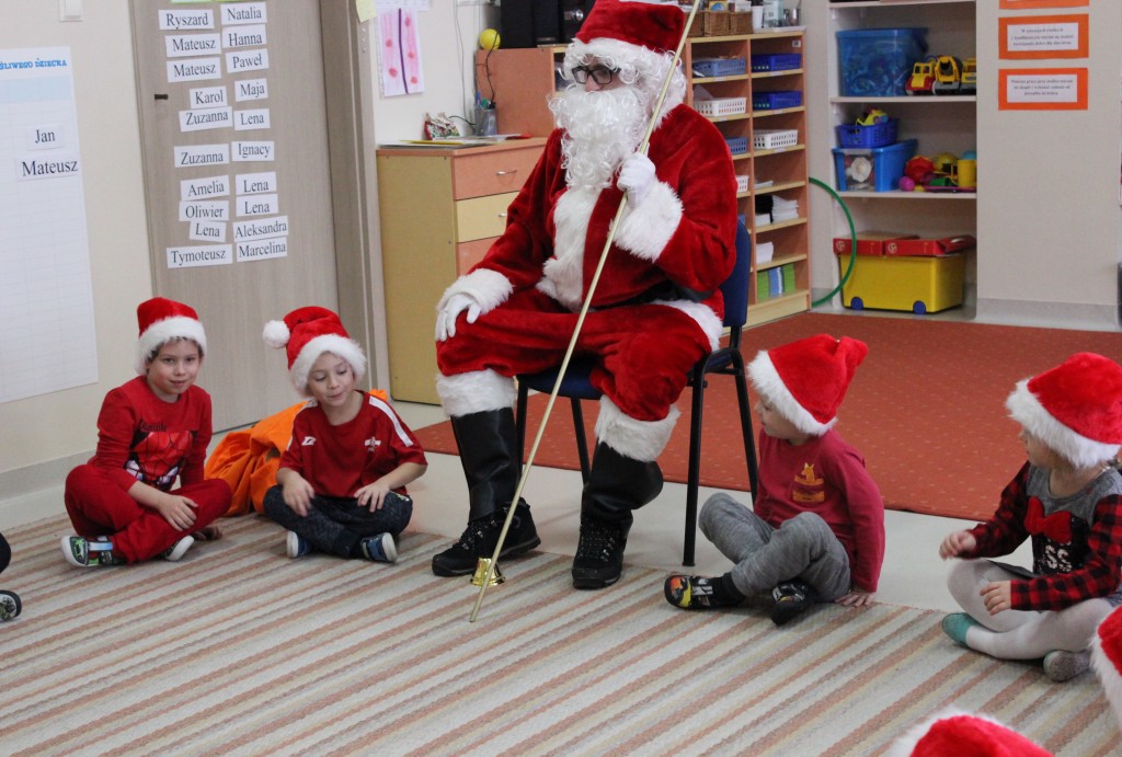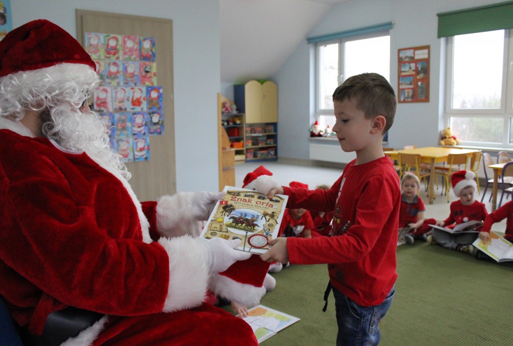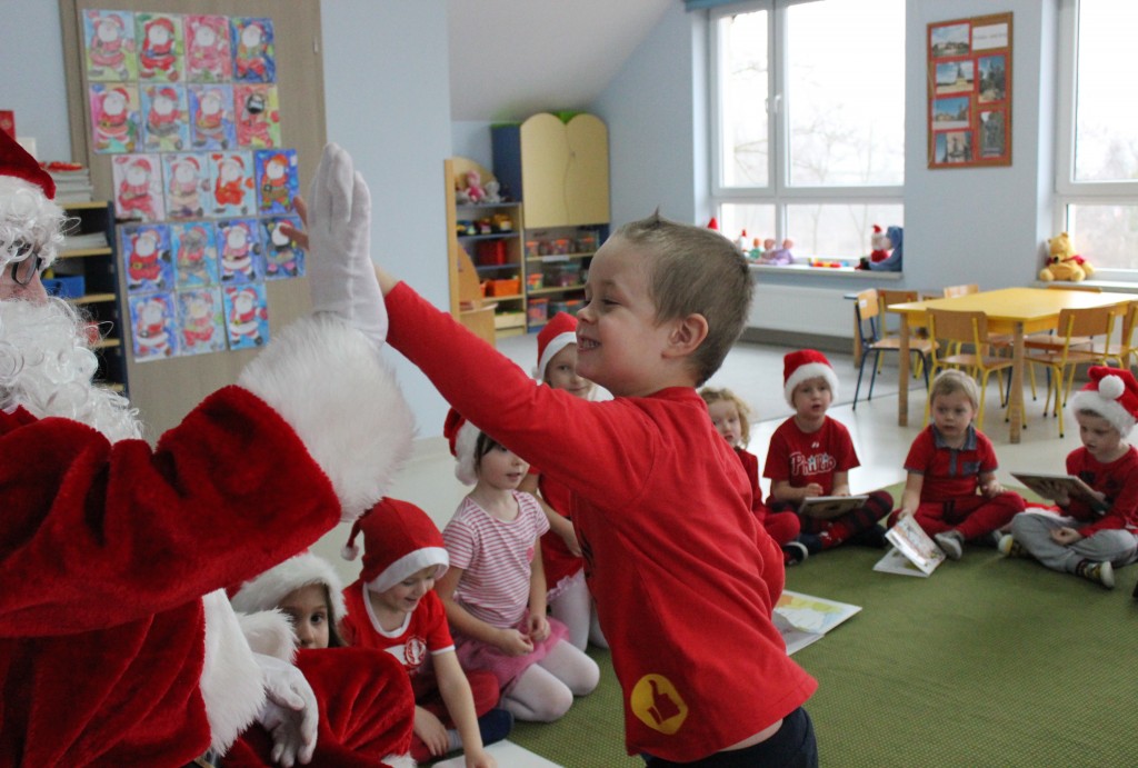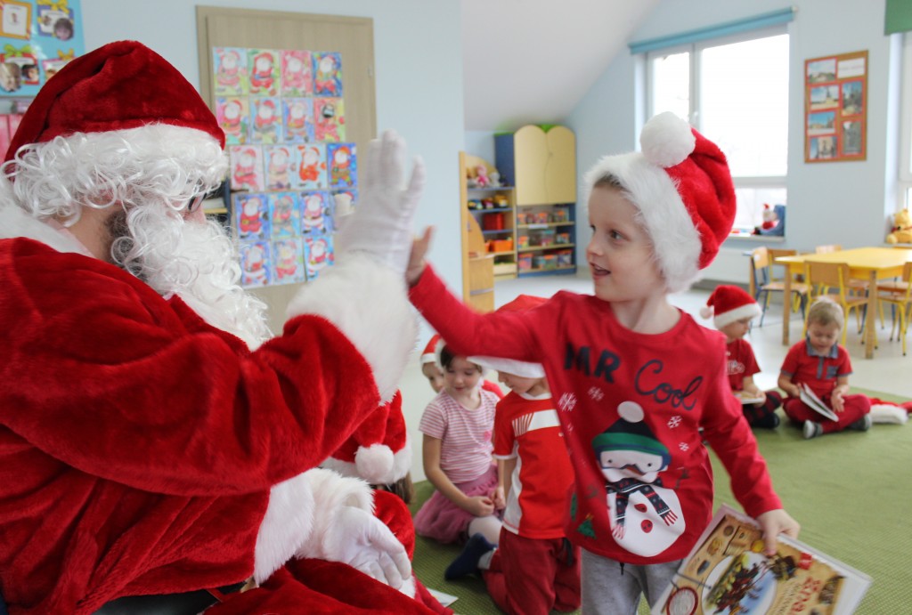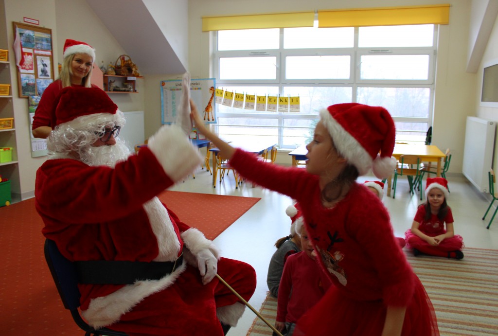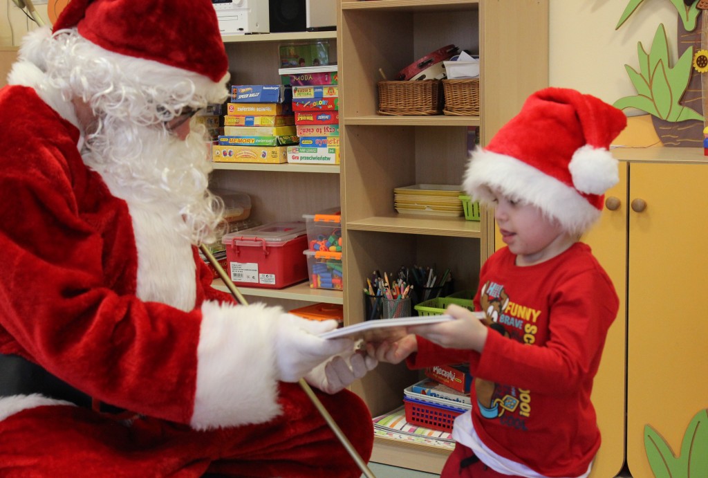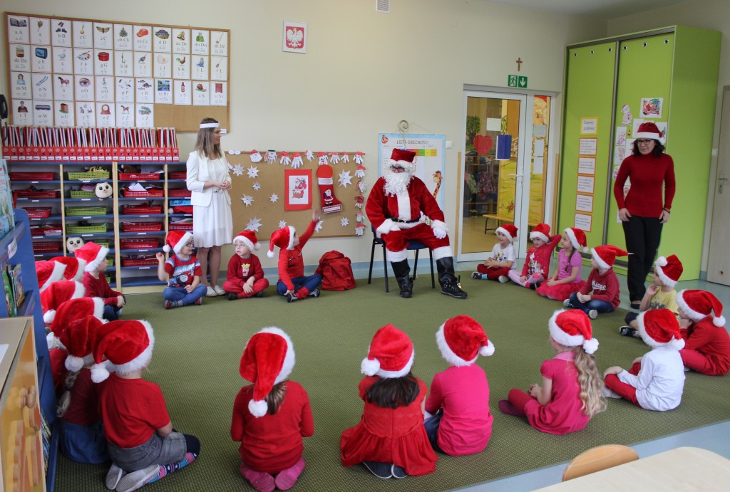 Każda z grup przygotowała mu piosenkę a najodważniejsi recytowali nawet wierszyki. Mikołaj otrzymał od dzieci mnóstwo laurek, listów, sugestii co do prezentów na Boże Narodzenie, ale przede wszystkim ogrom wdzięczności za to, że jest i nie zapomniał o nich w nocy. Do naszego przedszkola Mikołaj również przybył z workiem pełnym prezentów, które wywołały moc uśmiechów. Trudno było nam rozstać się z Mikołajem, ale wierzymy że za sprawą naszych dobrych uczynków powróci raz jeszcze w wieczór wigilijny spełniając kolejne marzenia.