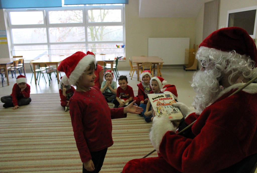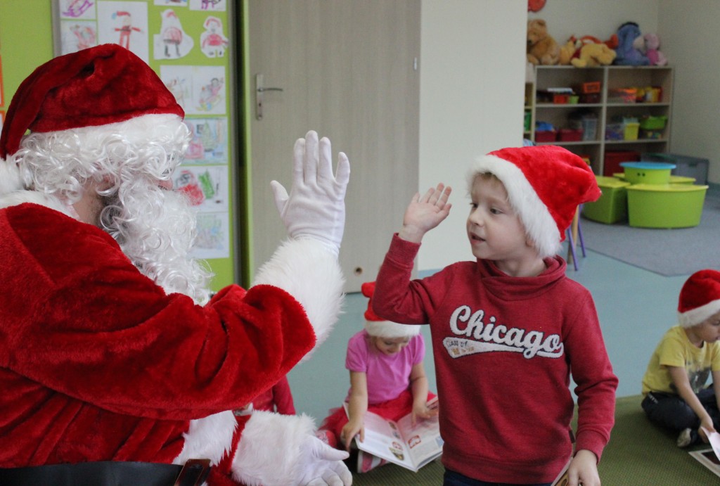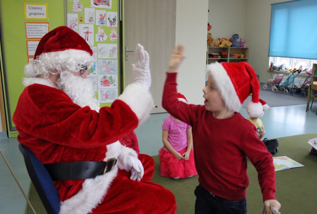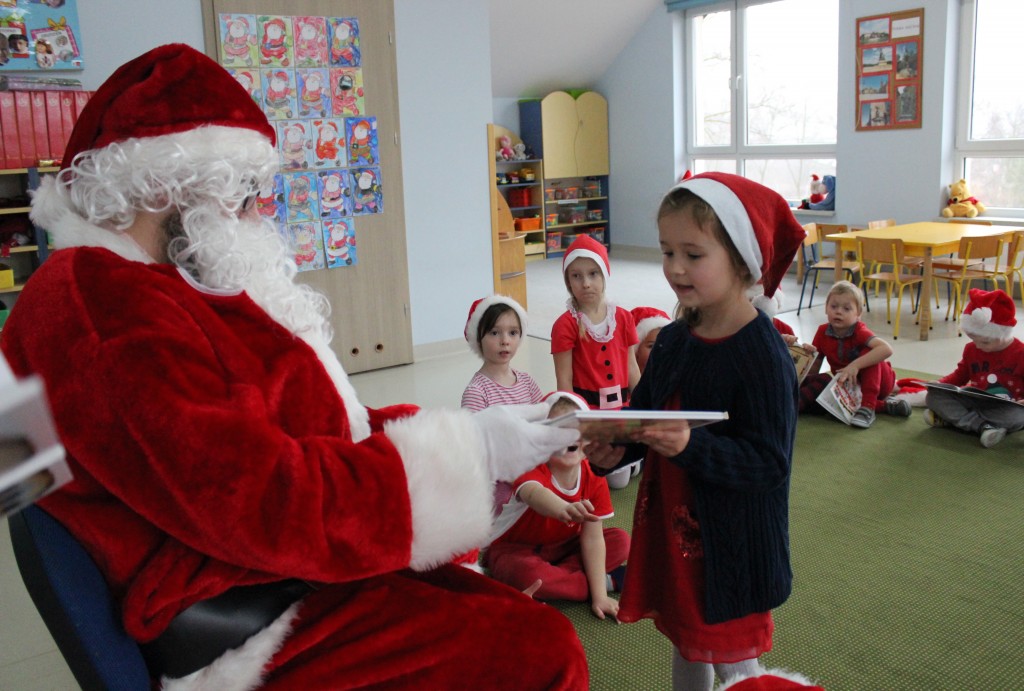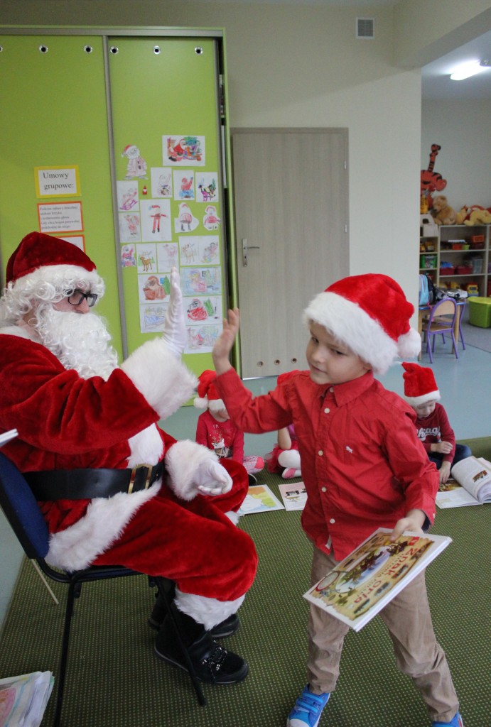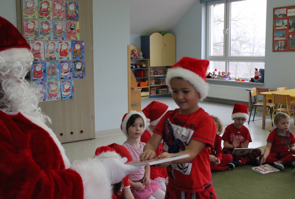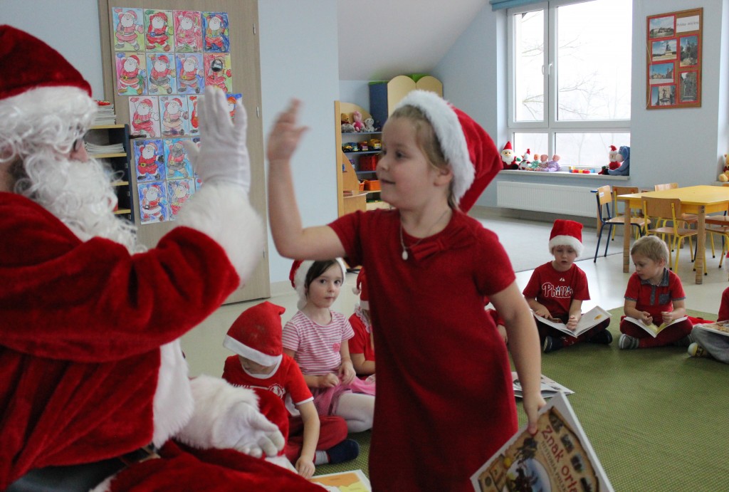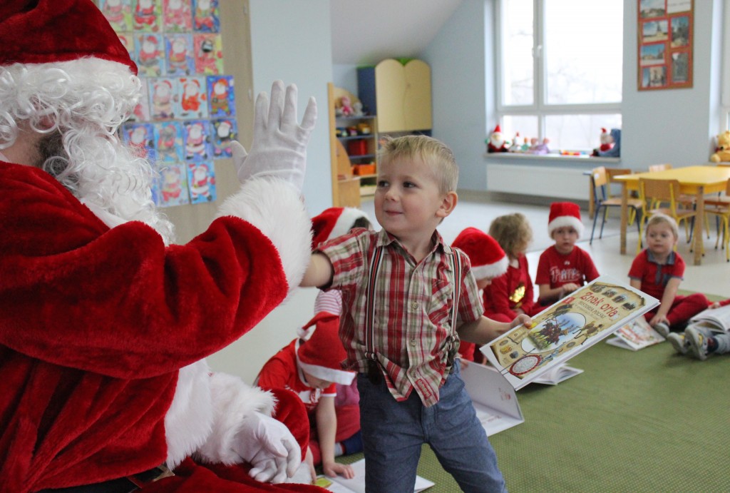 Każda z grup przygotowała mu piosenkę a najodważniejsi recytowali nawet wierszyki. Mikołaj otrzymał od dzieci mnóstwo laurek, listów, sugestii co do prezentów na Boże Narodzenie, ale przede wszystkim ogrom wdzięczności za to, że jest i nie zapomniał o nich w nocy. Do naszego przedszkola Mikołaj również przybył z workiem pełnym prezentów, które wywołały moc uśmiechów. Trudno było nam rozstać się z Mikołajem, ale wierzymy że za sprawą naszych dobrych uczynków powróci raz jeszcze w wieczór wigilijny spełniając kolejne marzenia.