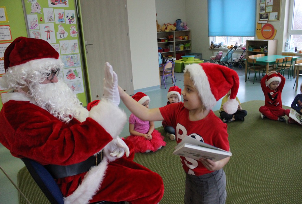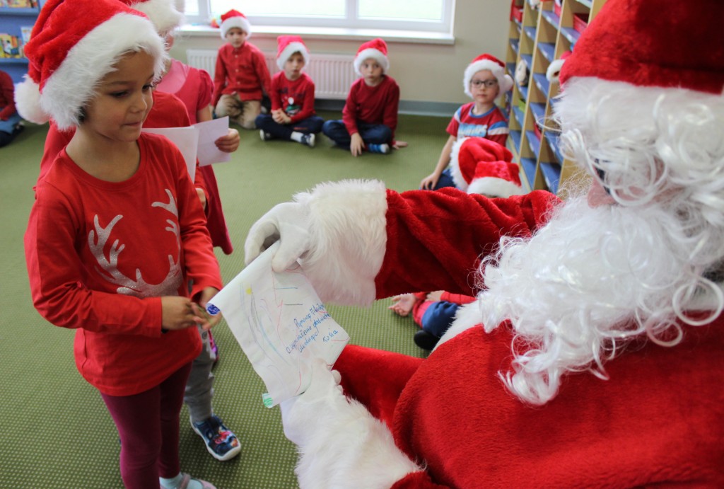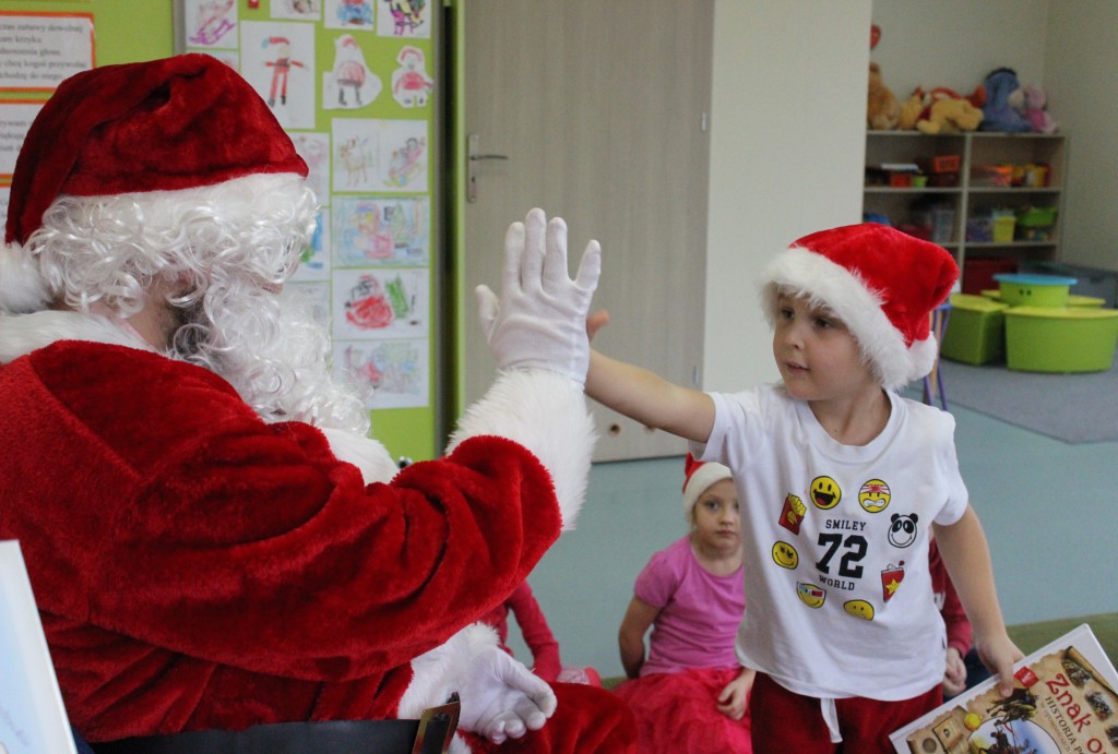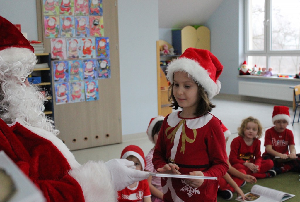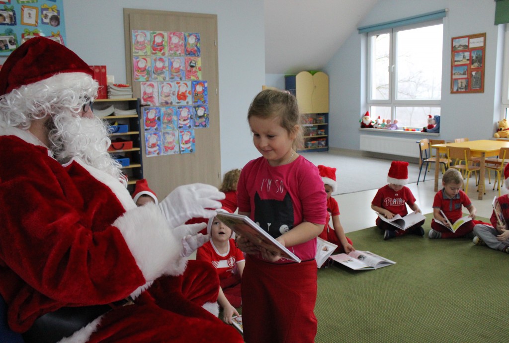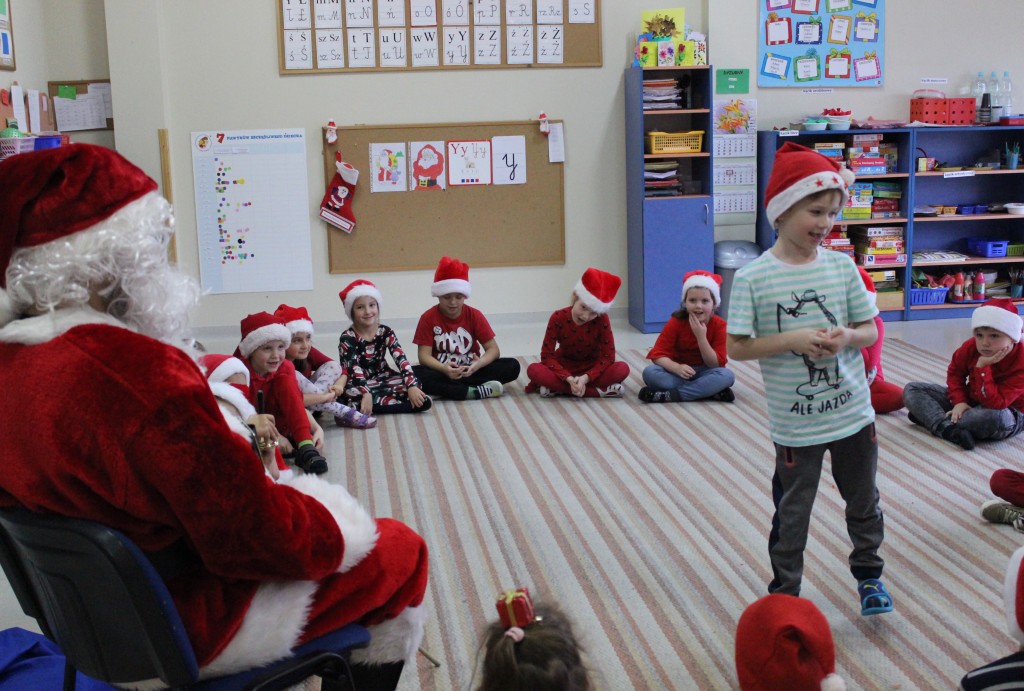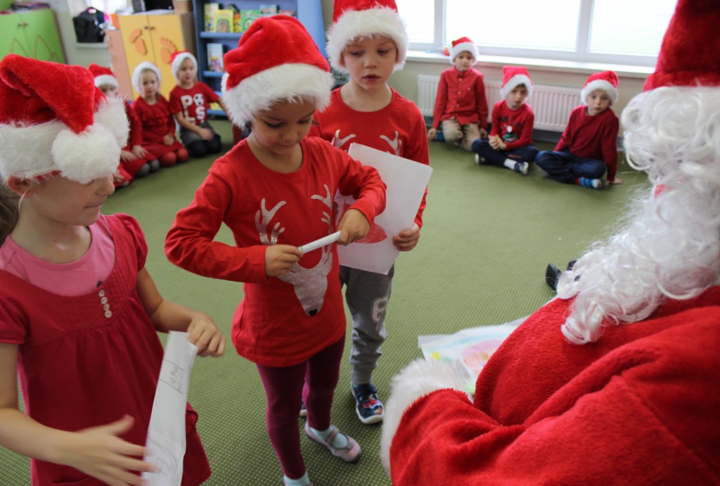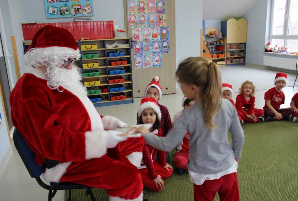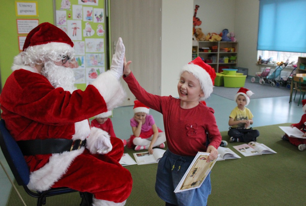 Każda z grup przygotowała mu piosenkę a najodważniejsi recytowali nawet wierszyki. Mikołaj otrzymał od dzieci mnóstwo laurek, listów, sugestii co do prezentów na Boże Narodzenie, ale przede wszystkim ogrom wdzięczności za to, że jest i nie zapomniał o nich w nocy. Do naszego przedszkola Mikołaj również przybył z workiem pełnym prezentów, które wywołały moc uśmiechów. Trudno było nam rozstać się z Mikołajem, ale wierzymy że za sprawą naszych dobrych uczynków powróci raz jeszcze w wieczór wigilijny spełniając kolejne marzenia.
