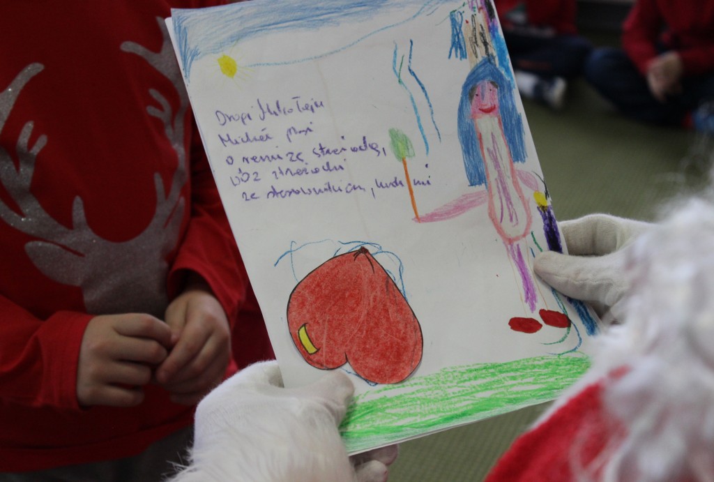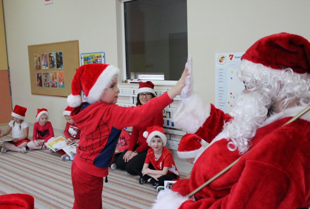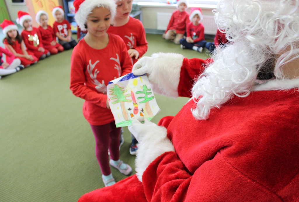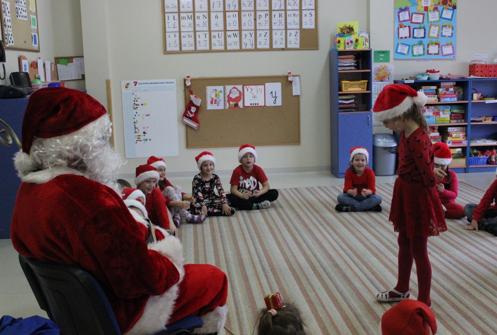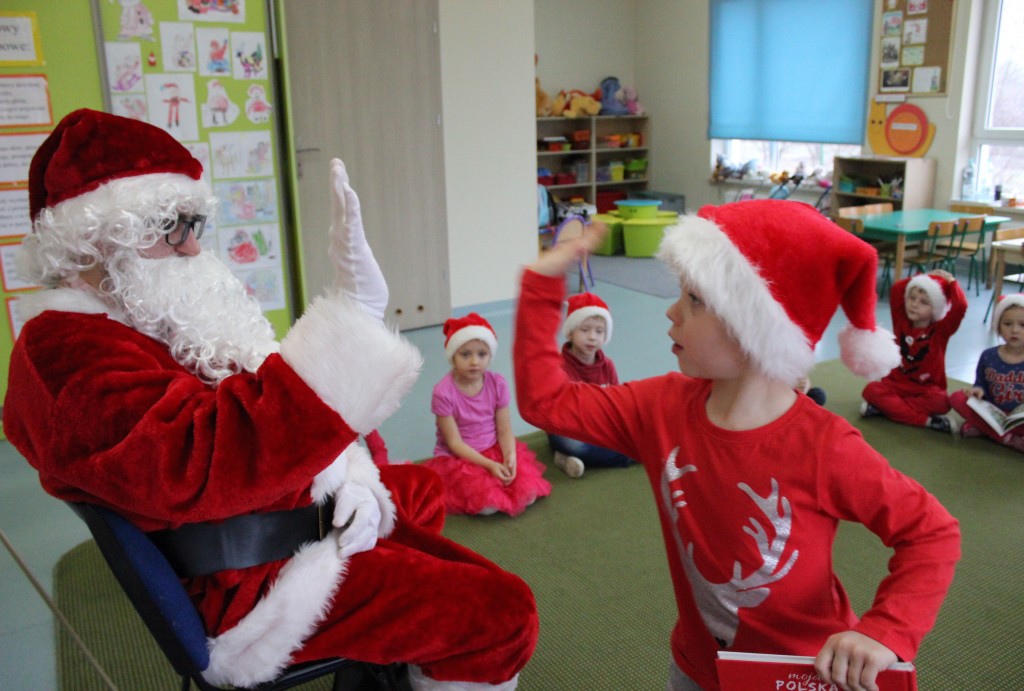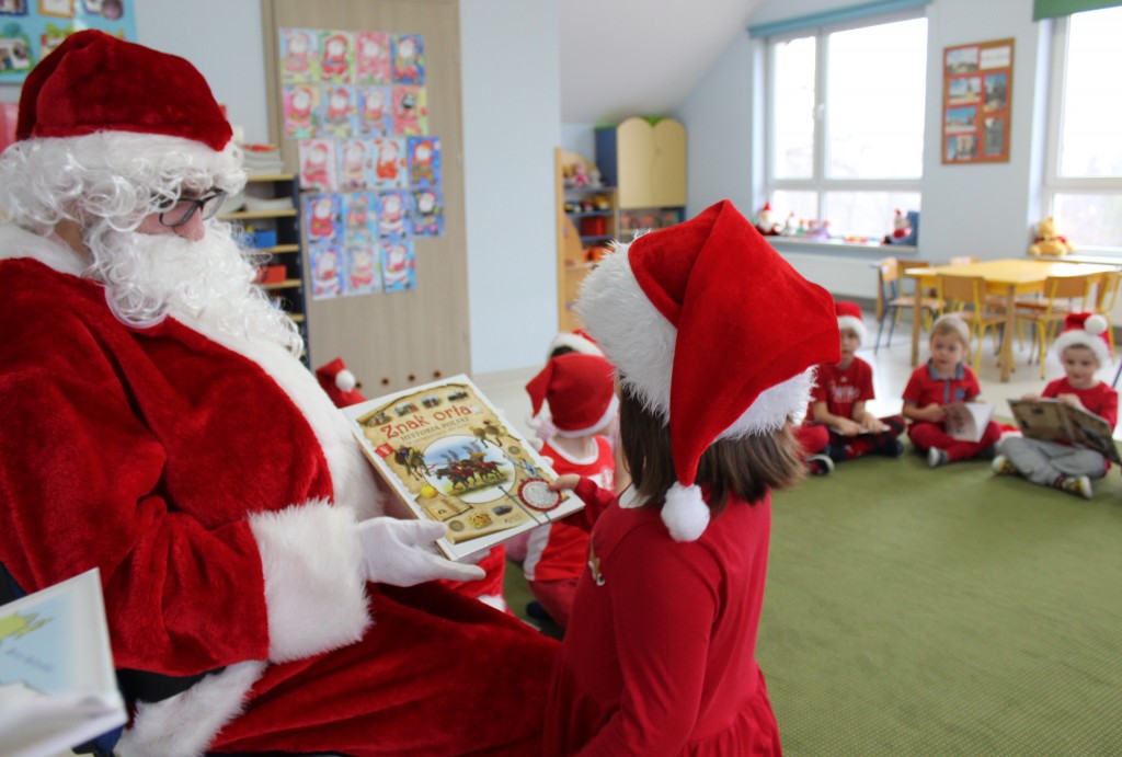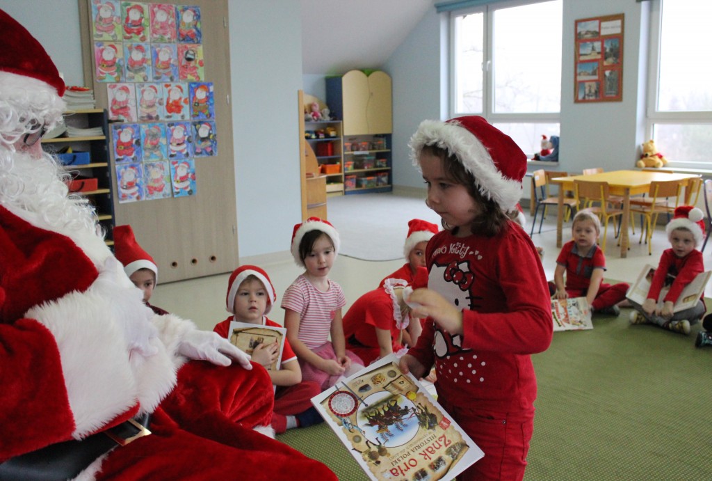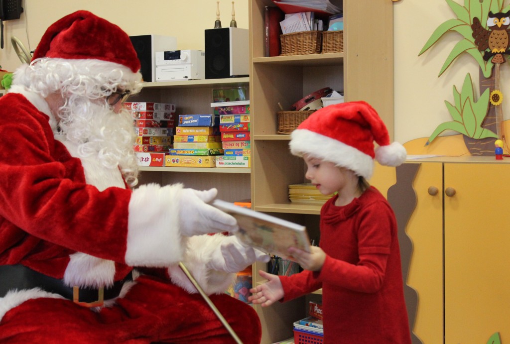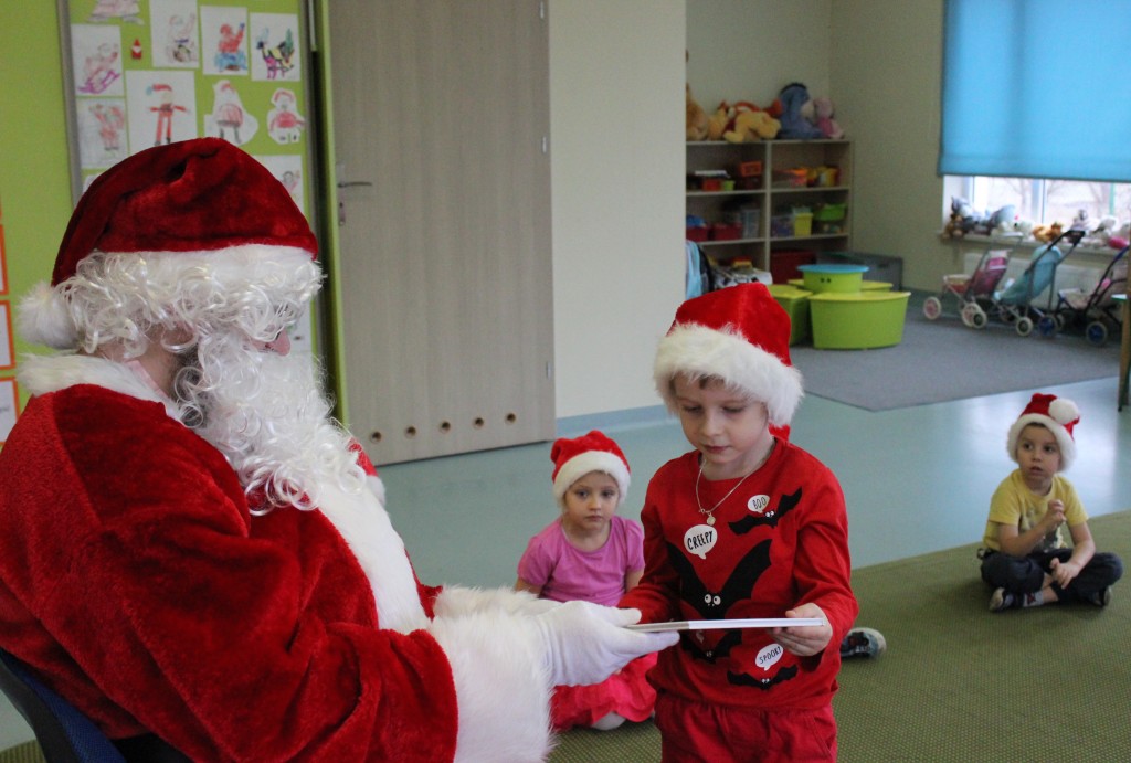 Każda z grup przygotowała mu piosenkę a najodważniejsi recytowali nawet wierszyki. Mikołaj otrzymał od dzieci mnóstwo laurek, listów, sugestii co do prezentów na Boże Narodzenie, ale przede wszystkim ogrom wdzięczności za to, że jest i nie zapomniał o nich w nocy. Do naszego przedszkola Mikołaj również przybył z workiem pełnym prezentów, które wywołały moc uśmiechów. Trudno było nam rozstać się z Mikołajem, ale wierzymy że za sprawą naszych dobrych uczynków powróci raz jeszcze w wieczór wigilijny spełniając kolejne marzenia.
