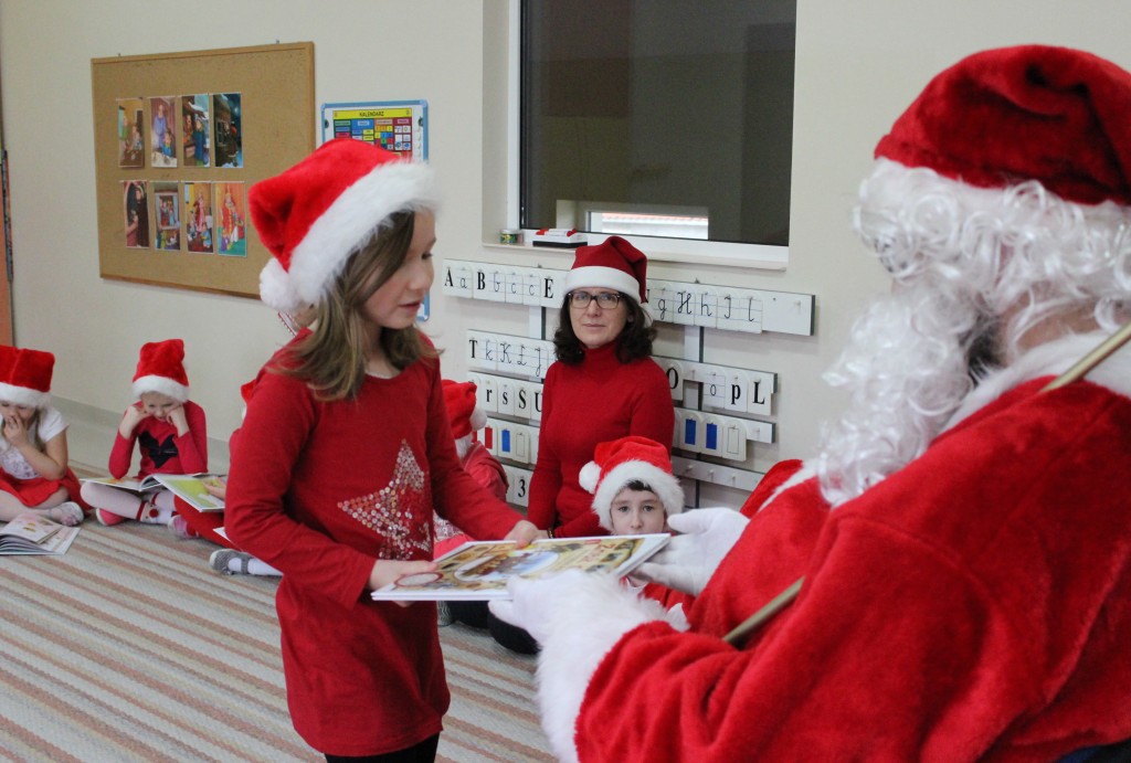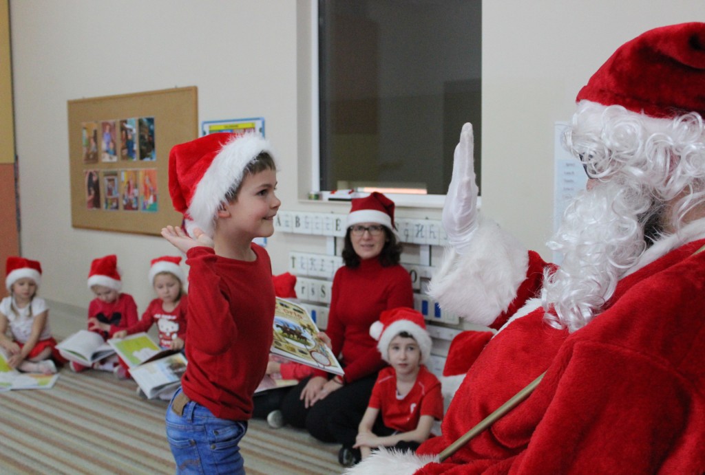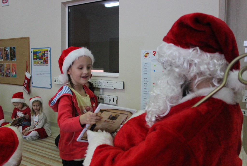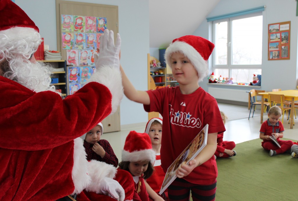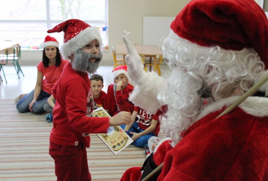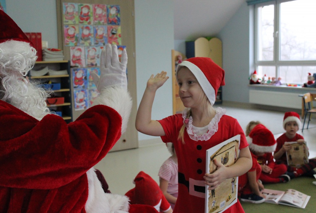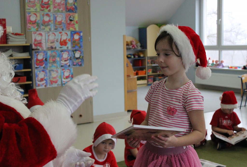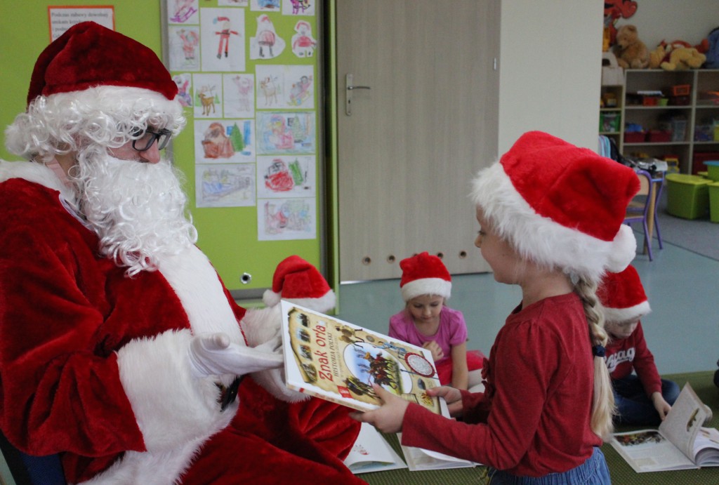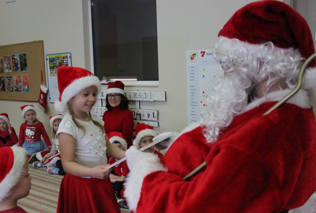Każda z grup przygotowała mu piosenkę a najodważniejsi recytowali nawet wierszyki. Mikołaj otrzymał od dzieci mnóstwo laurek, listów, sugestii co do prezentów na Boże Narodzenie, ale przede wszystkim ogrom wdzięczności za to, że jest i nie zapomniał o nich w nocy. Do naszego przedszkola Mikołaj również przybył z workiem pełnym prezentów, które wywołały moc uśmiechów. Trudno było nam rozstać się z Mikołajem, ale wierzymy że za sprawą naszych dobrych uczynków powróci raz jeszcze w wieczór wigilijny spełniając kolejne marzenia.