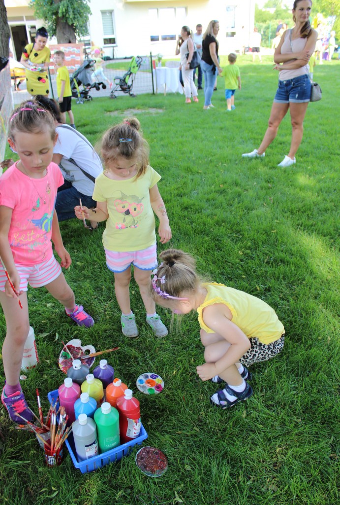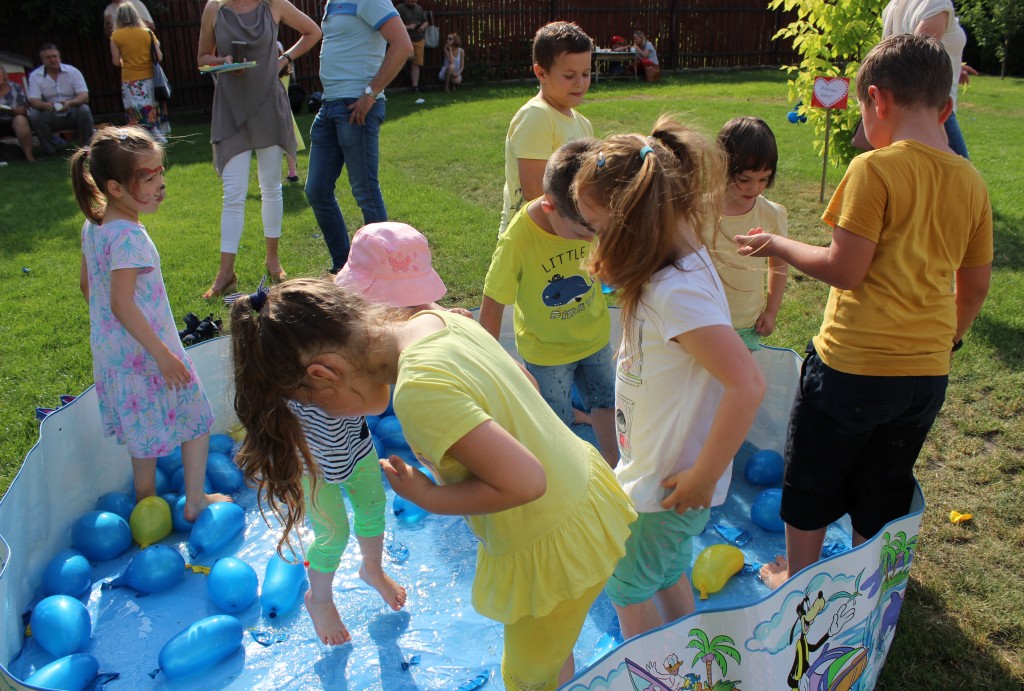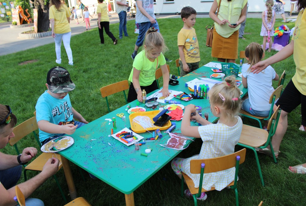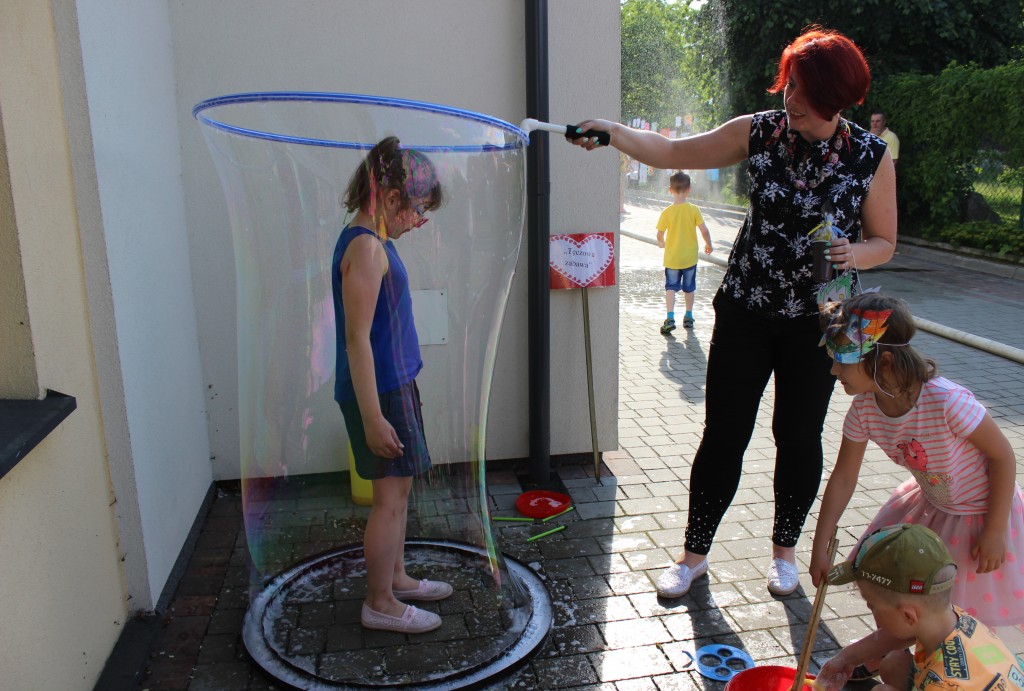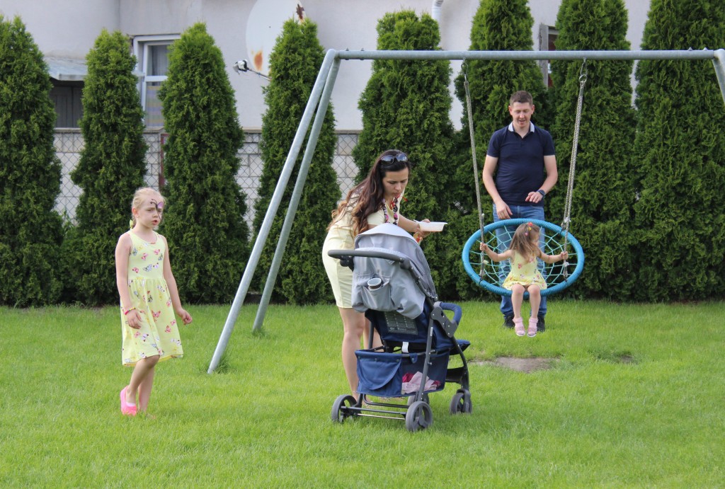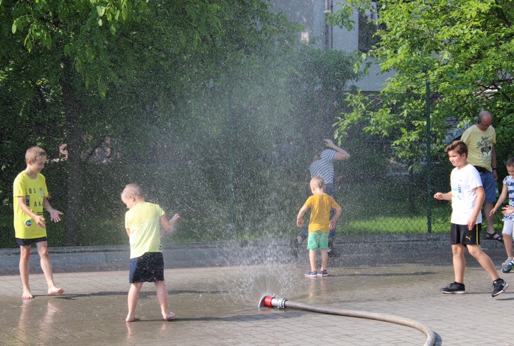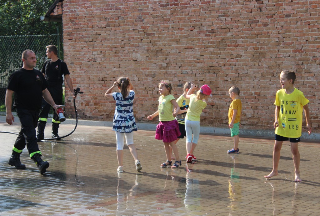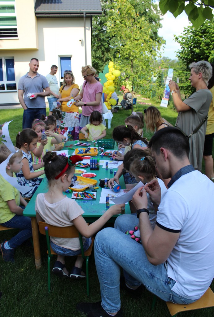 Po części oficjalnej, teren naszego przedszkola zamienił się w prawdziwy rodzinny piknik. Każdy mógł tam znaleźć coś dla siebie, od działań plastycznych po konkurencje ruchowe, stoisko z książkami i ścieżkę sensoryczną. Największą atrakcją niewątpliwie okazała się kurtyna wodna przygotowana przez straż pożarną, która dzięki dopisującej pogodzie zapewniła niesamowitą zabawę. Dzięki wsparciu rodziców nie zabrakło oczywiście małego co nieco w naszej kubusiowej kawiarence