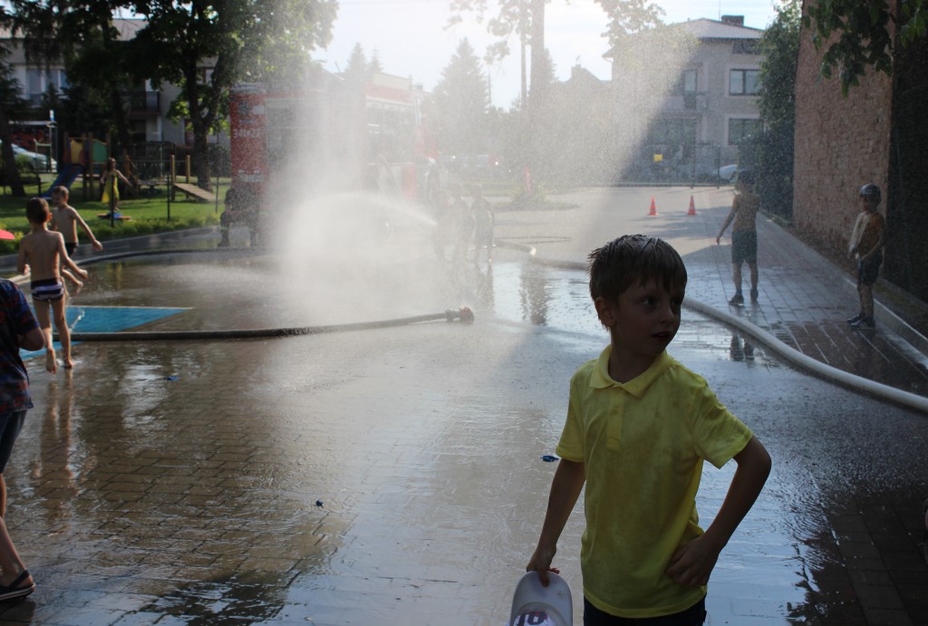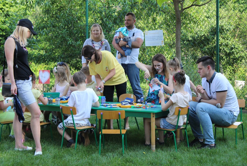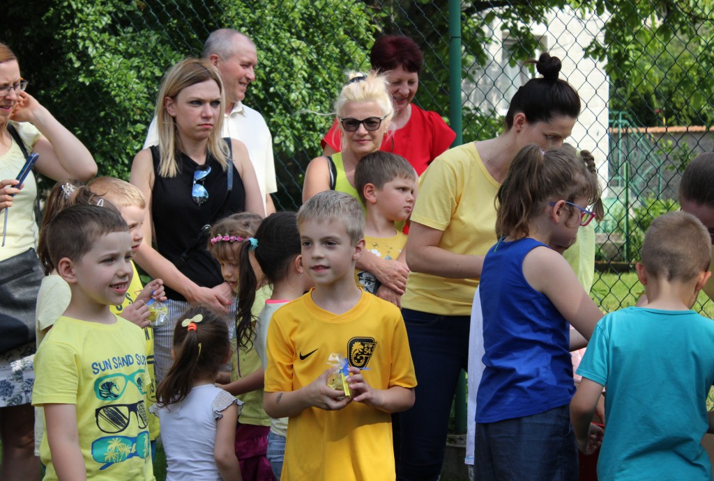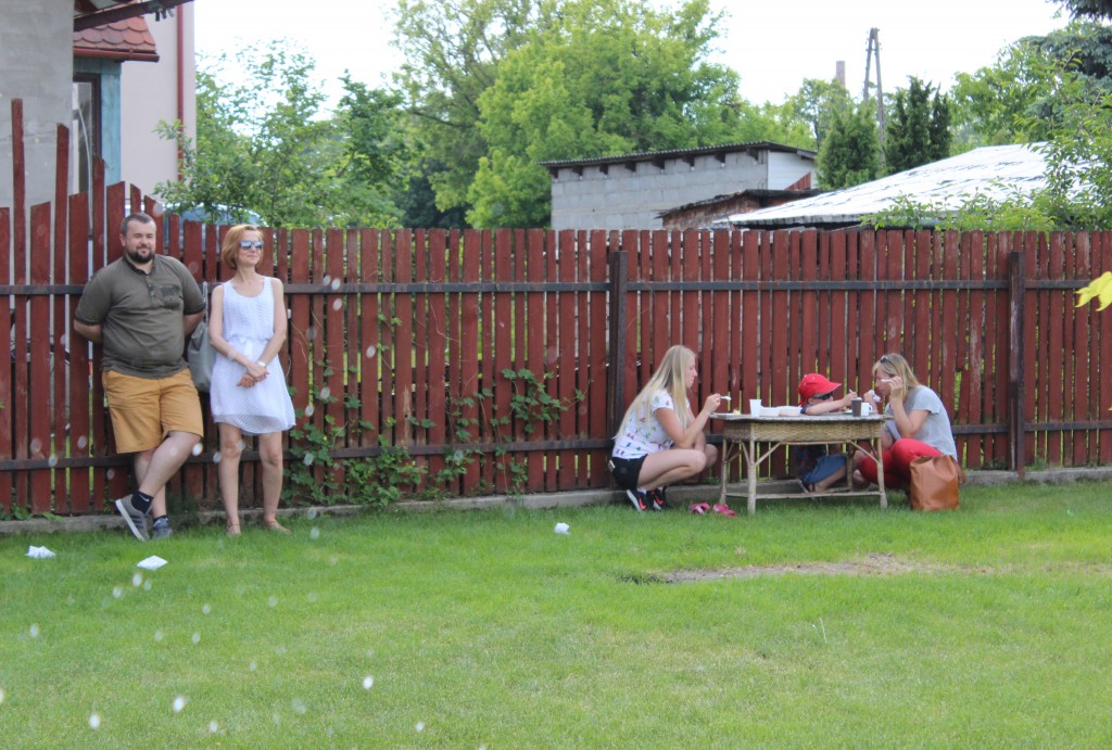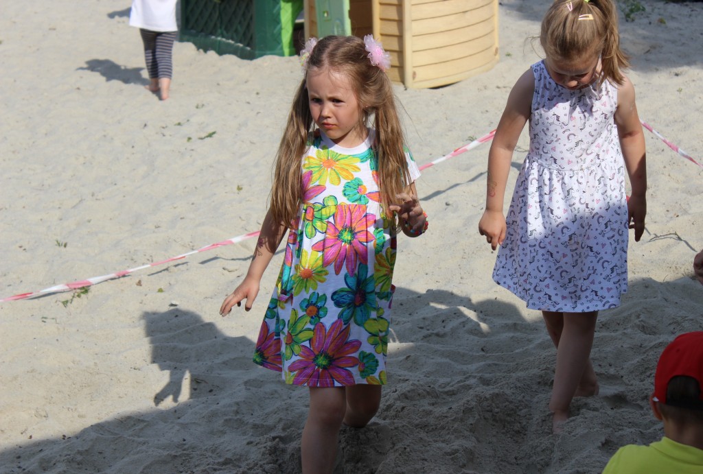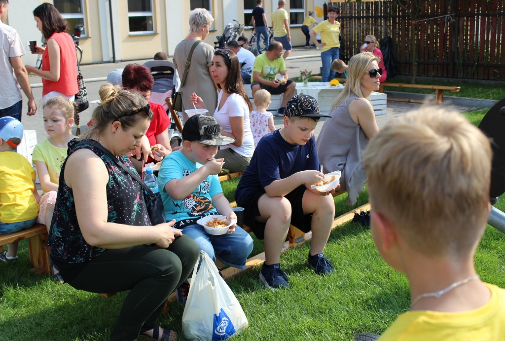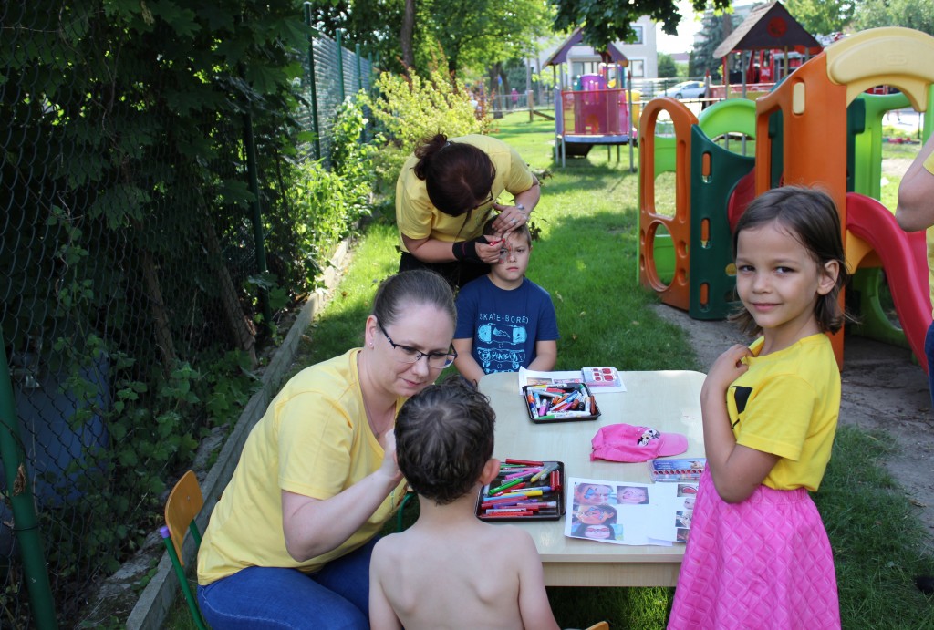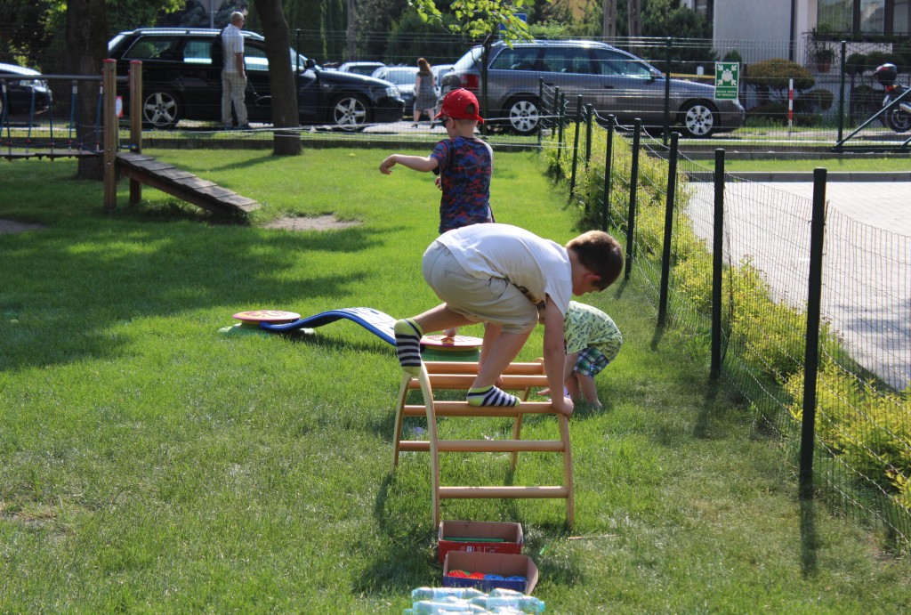 Po części oficjalnej, teren naszego przedszkola zamienił się w prawdziwy rodzinny piknik. Każdy mógł tam znaleźć coś dla siebie, od działań plastycznych po konkurencje ruchowe, stoisko z książkami i ścieżkę sensoryczną. Największą atrakcją niewątpliwie okazała się kurtyna wodna przygotowana przez straż pożarną, która dzięki dopisującej pogodzie zapewniła niesamowitą zabawę. Dzięki wsparciu rodziców nie zabrakło oczywiście małego co nieco w naszej kubusiowej kawiarence