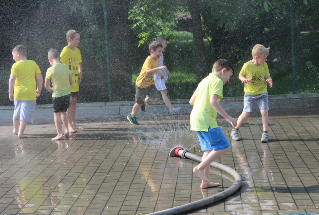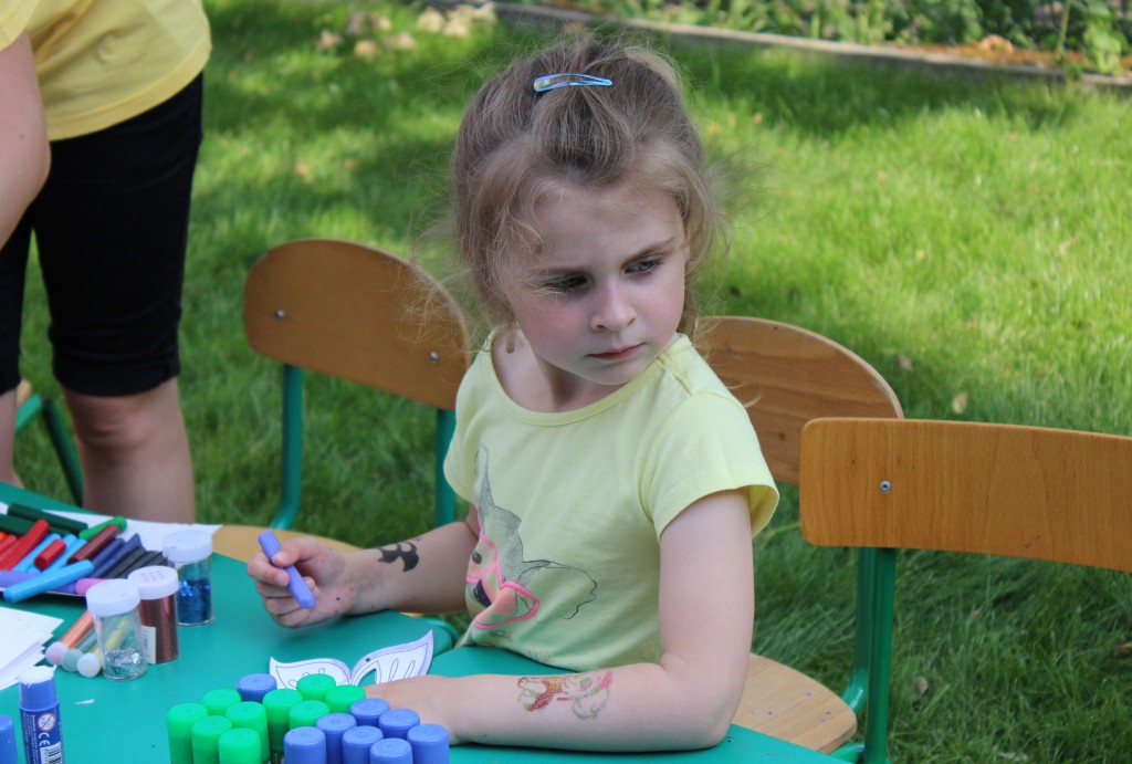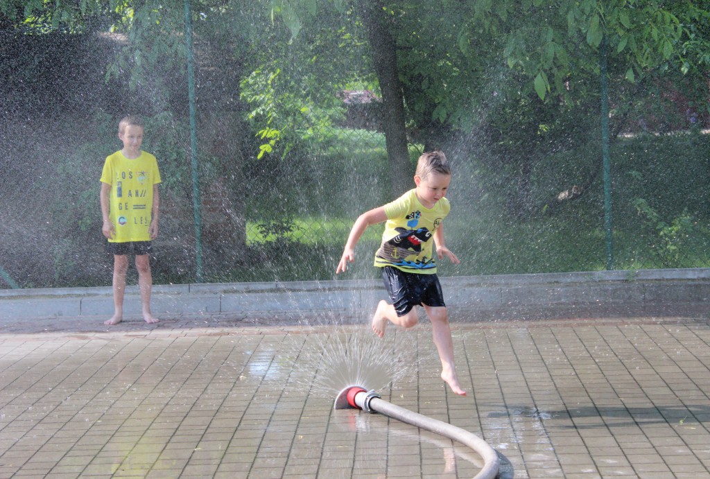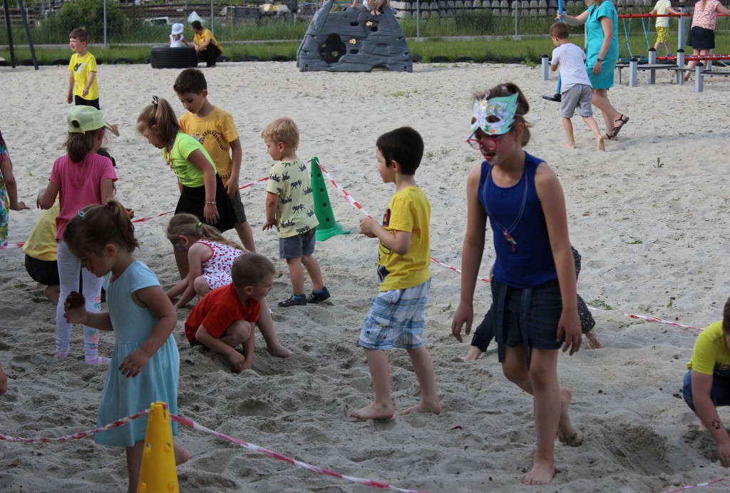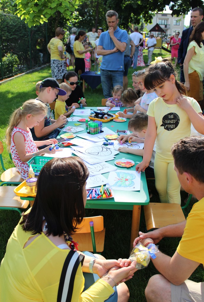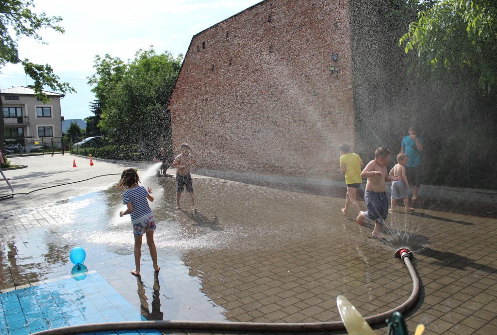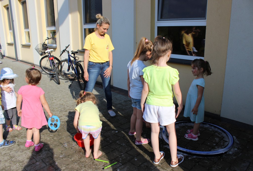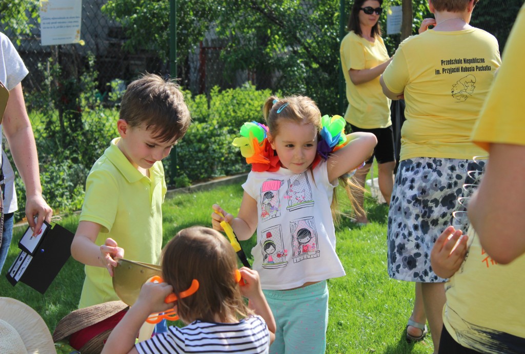 Po części oficjalnej, teren naszego przedszkola zamienił się w prawdziwy rodzinny piknik. Każdy mógł tam znaleźć coś dla siebie, od działań plastycznych po konkurencje ruchowe, stoisko z książkami i ścieżkę sensoryczną. Największą atrakcją niewątpliwie okazała się kurtyna wodna przygotowana przez straż pożarną, która dzięki dopisującej pogodzie zapewniła niesamowitą zabawę. Dzięki wsparciu rodziców nie zabrakło oczywiście małego co nieco w naszej kubusiowej kawiarence