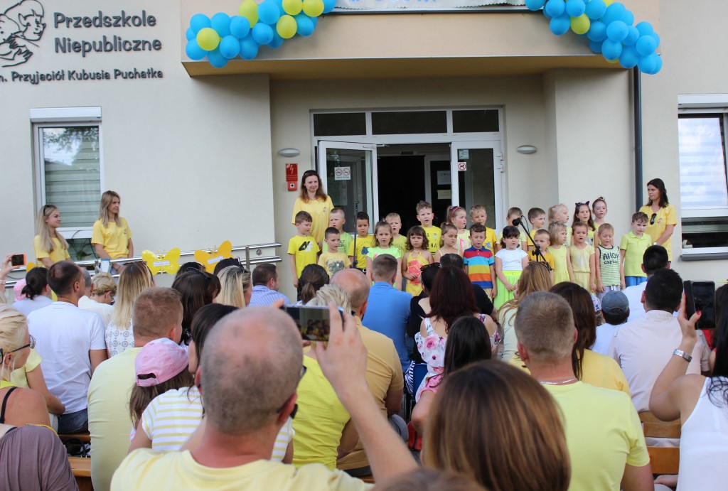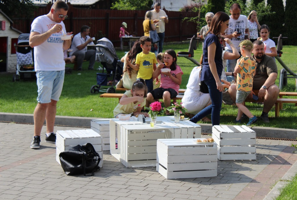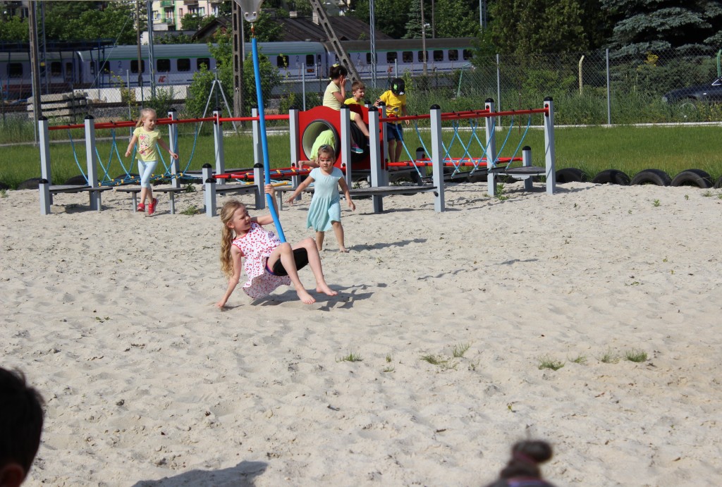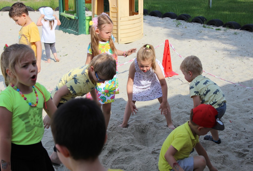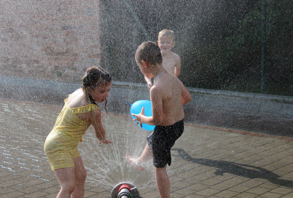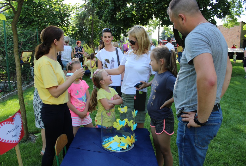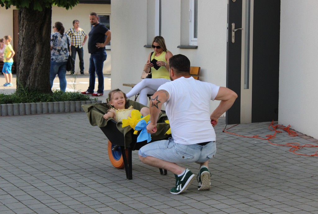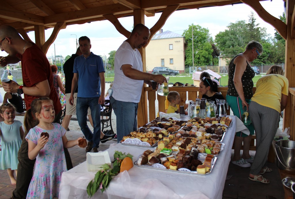 Po części oficjalnej, teren naszego przedszkola zamienił się w prawdziwy rodzinny piknik. Każdy mógł tam znaleźć coś dla siebie, od działań plastycznych po konkurencje ruchowe, stoisko z książkami i ścieżkę sensoryczną. Największą atrakcją niewątpliwie okazała się kurtyna wodna przygotowana przez straż pożarną, która dzięki dopisującej pogodzie zapewniła niesamowitą zabawę. Dzięki wsparciu rodziców nie zabrakło oczywiście małego co nieco w naszej kubusiowej kawiarence