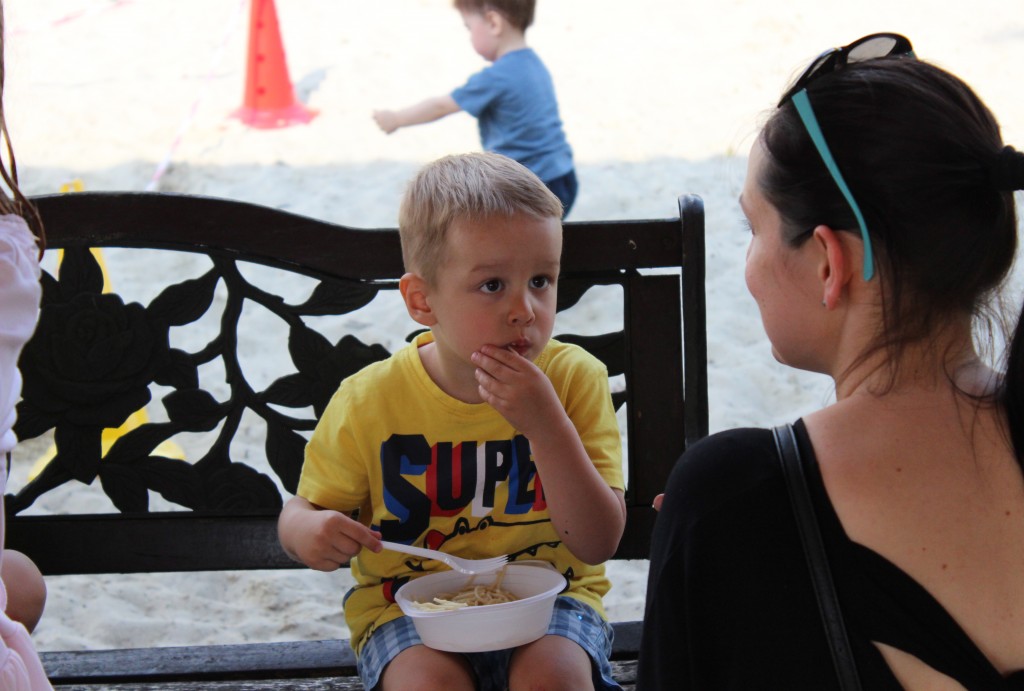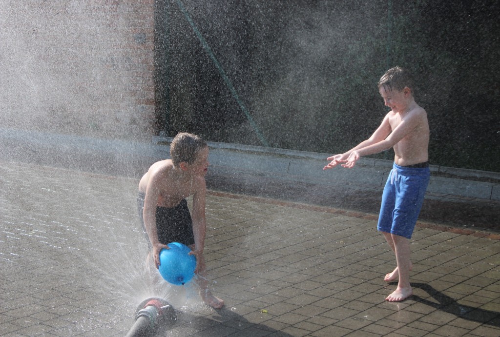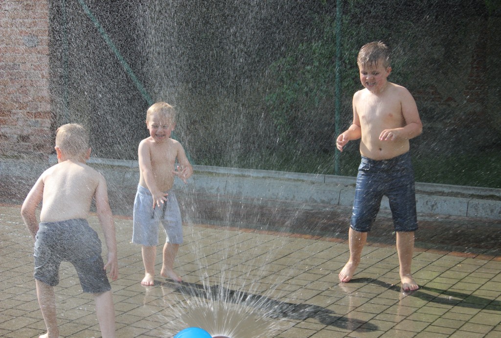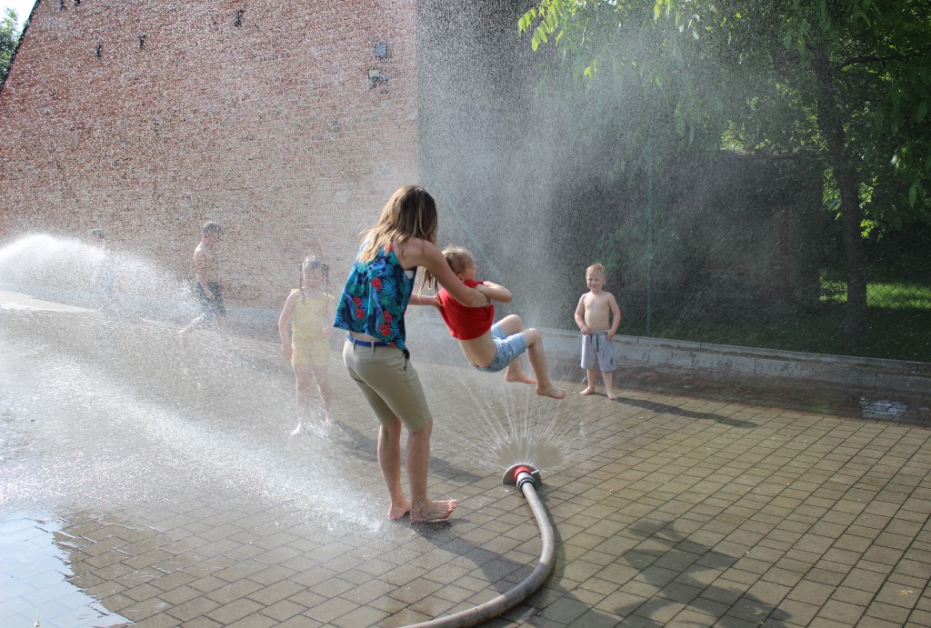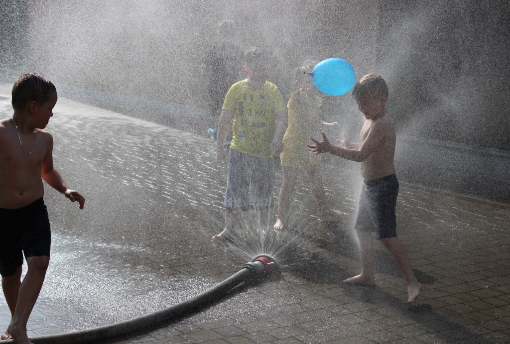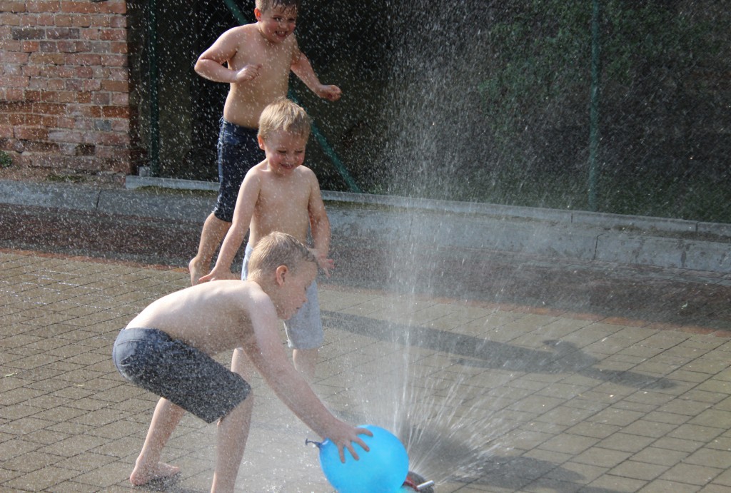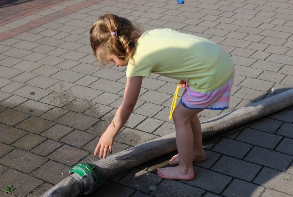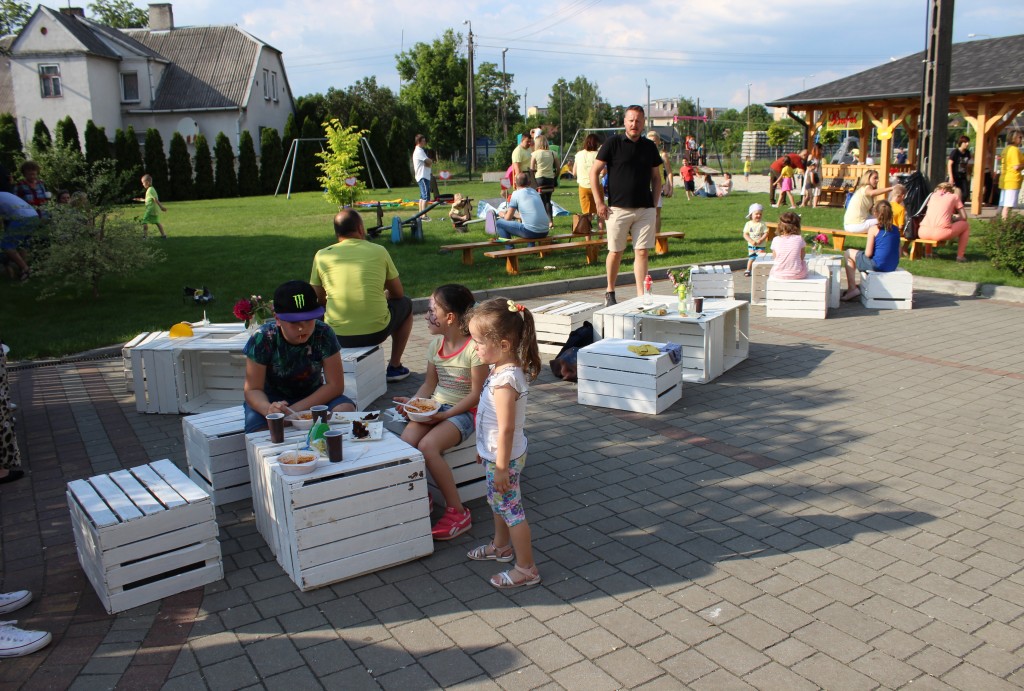 Po części oficjalnej, teren naszego przedszkola zamienił się w prawdziwy rodzinny piknik. Każdy mógł tam znaleźć coś dla siebie, od działań plastycznych po konkurencje ruchowe, stoisko z książkami i ścieżkę sensoryczną. Największą atrakcją niewątpliwie okazała się kurtyna wodna przygotowana przez straż pożarną, która dzięki dopisującej pogodzie zapewniła niesamowitą zabawę. Dzięki wsparciu rodziców nie zabrakło oczywiście małego co nieco w naszej kubusiowej kawiarence