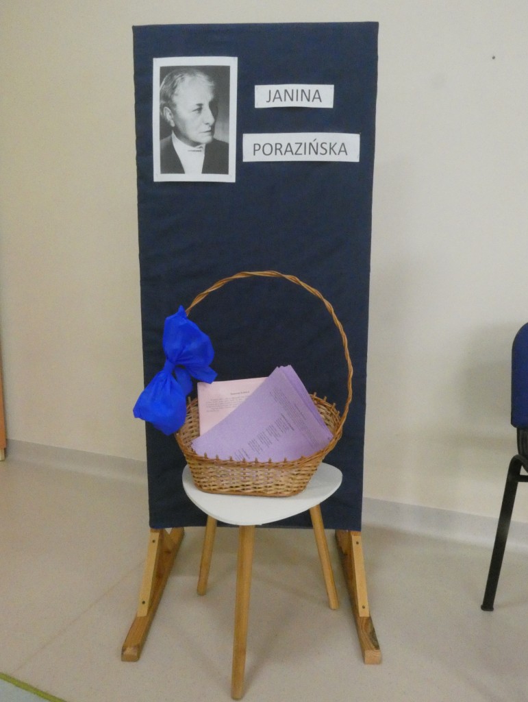 Na koniec spotkania otrzymaliśmy do przeczytania w domu przez naszych rodziców wiersze Janiny Porazińskiej pt. „Góry nasze, góry!”, „Idzie woda”, „Lesie nasz zielony!”, „Zabawka z jarmarku” oraz „Na chybotce”. Okazuje się, że pisarka rozmiłowana była w folklorze, dlatego też jej wiersze zawierają specyficzne słownictwo, melodię, sposób obrazowania oraz wątki i motywy z ludowych przypowieści.