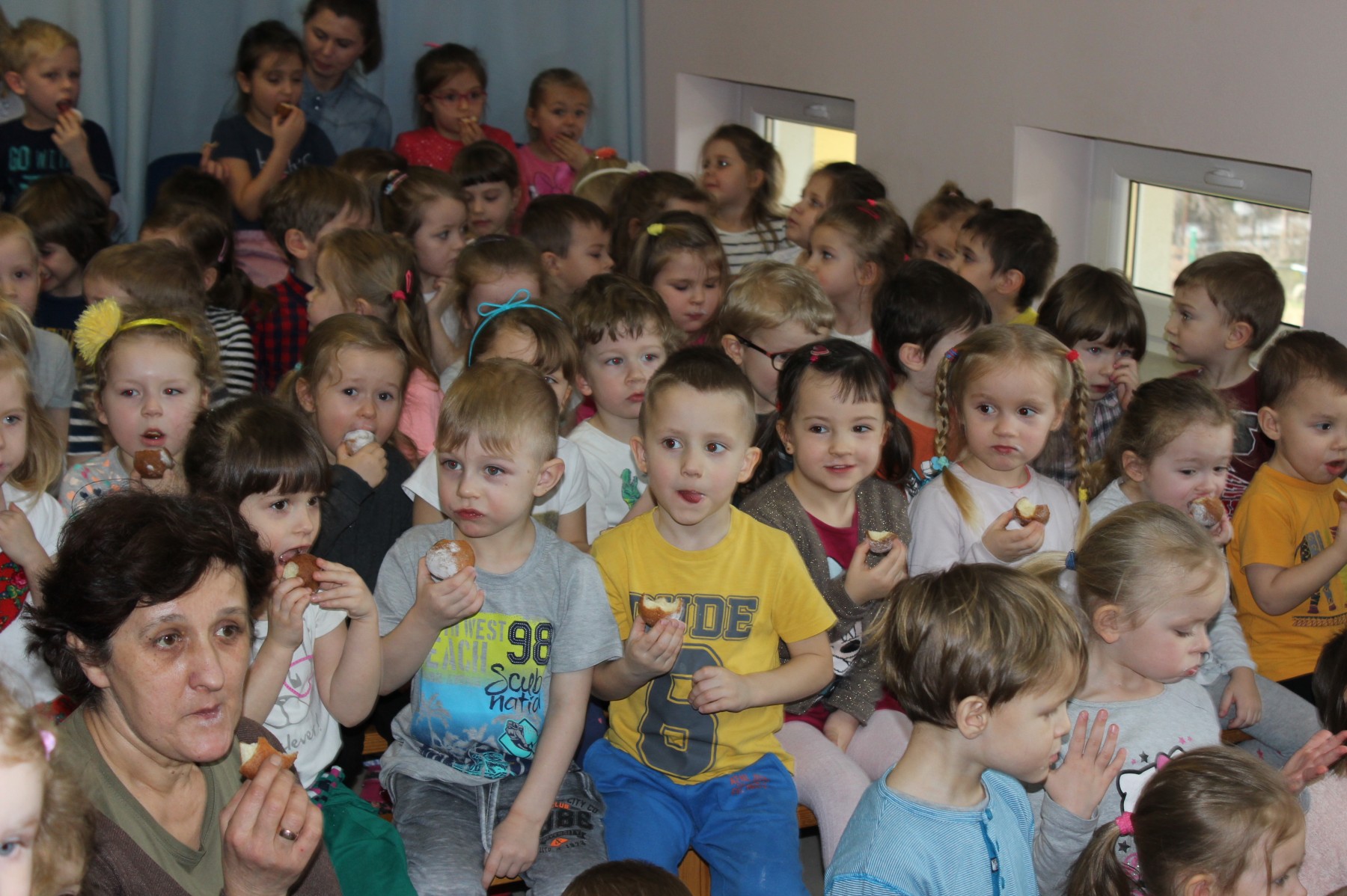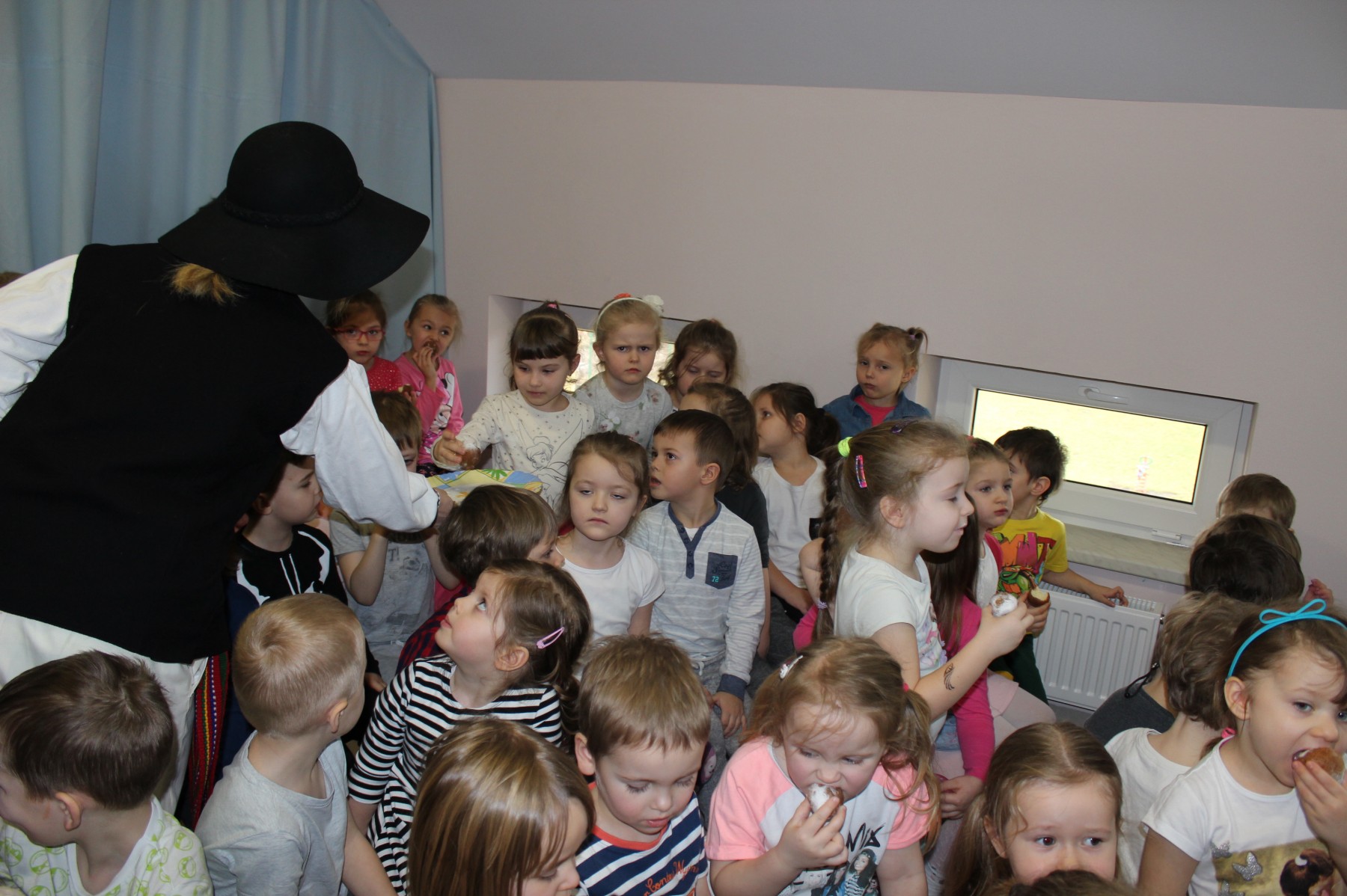 Już tradycją stało się w naszym przedszkolu, że co roku nauczyciele przygotowują przedstawienie dla swoich podopiecznych. W tym roku z okazji świętowania Tłustego Czwartku – 24 lutego, kadra pedagogiczna naszego przedszkola, postanowiła zinscenizować tekst Marii Kownackiej pt. „Pączki i faworki u babci Honorki”. Reżyserią zajęły się: Agata Plandowska i Grażyna Barabasz, która również przygotowała scenografię. W poszczególne role wcieliły się następujące osoby: