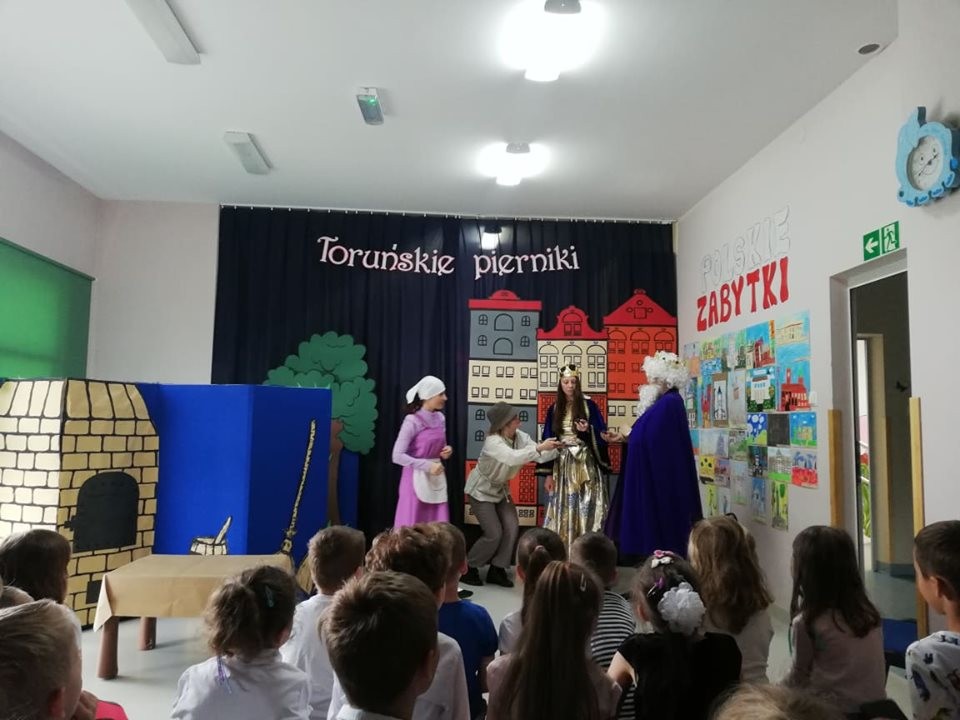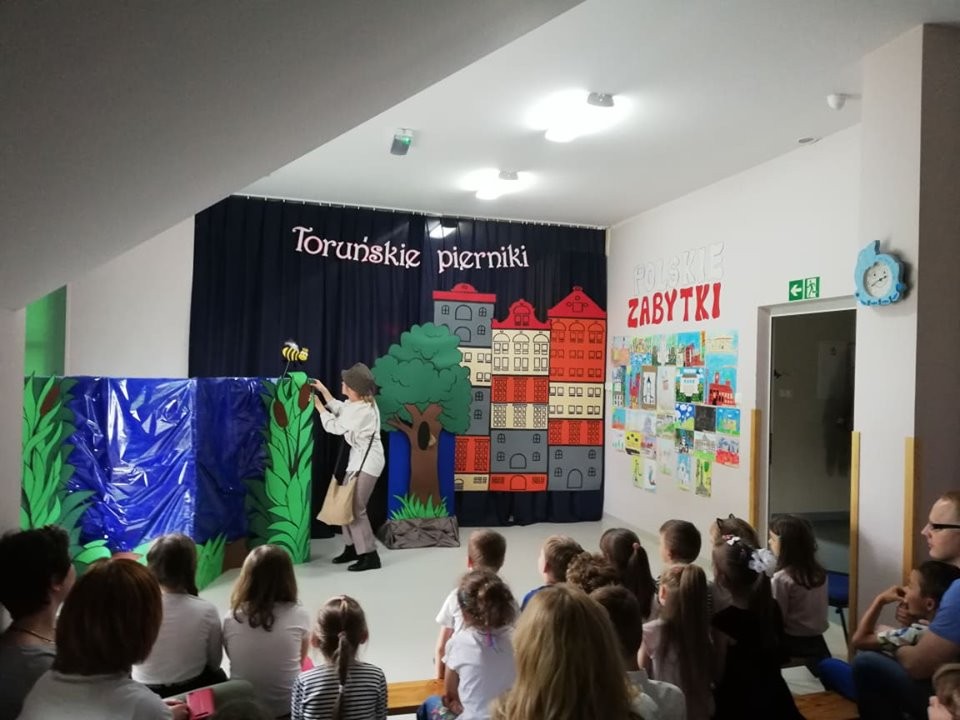 Zaproszeni goście mieli okazję obejrzeć legendę o toruńskich piernikach w wykonaniu pań z naszego przedszkola, po czym Pani Dyrektor uroczyście nagrodziła każdego małego artystę. Po części oficjalnej, jak na kubusiowe przedszkole przystało, czekało na wszystkich małe co nieco!