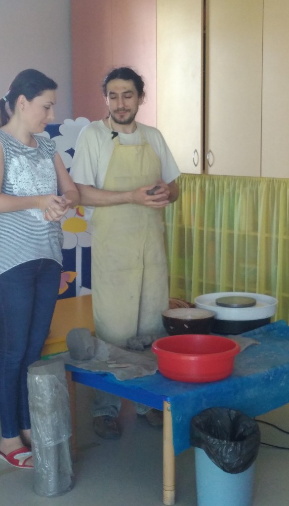 W naszych przedszkolnych progach zagościł garncarz, pan Krystian Nowak, który przyjechał do nas 16 maja. Aby go posłuchać i obejrzeć jego pracę, dzieci zgromadziły się w sali teatralnej, gdzie pan Krystian przybliżył im historię garcarstwa, jednego z najstarszych rzemiosł świata. Zwrócił on szczegolną uwagę na to, że nasi przodkowie musieli włożyć wiele trudu, zręczności i dokładności w wykonywanie tego zawodu. Podczas tego spotkania dzieci zobaczyły jak działa koło garncarskie, napędzane tradycyjnie nogą. Dodatkową atrakcją było to, że każdy przedszkolak wykonał, z pomocą zaproszonego garncarza, miseczkę w kształcie serca.