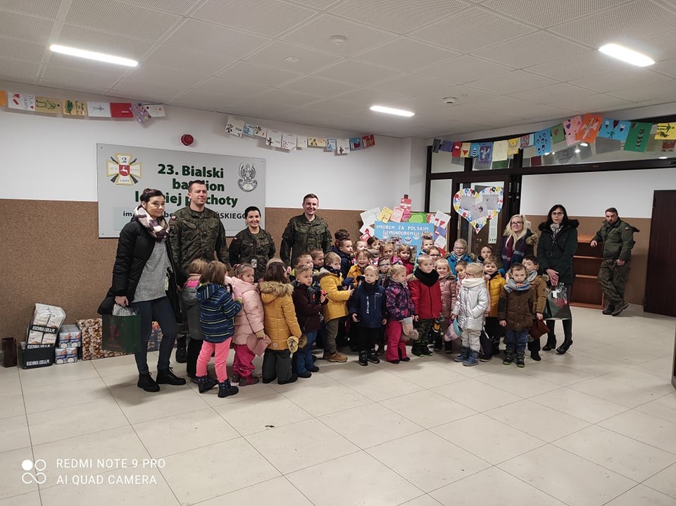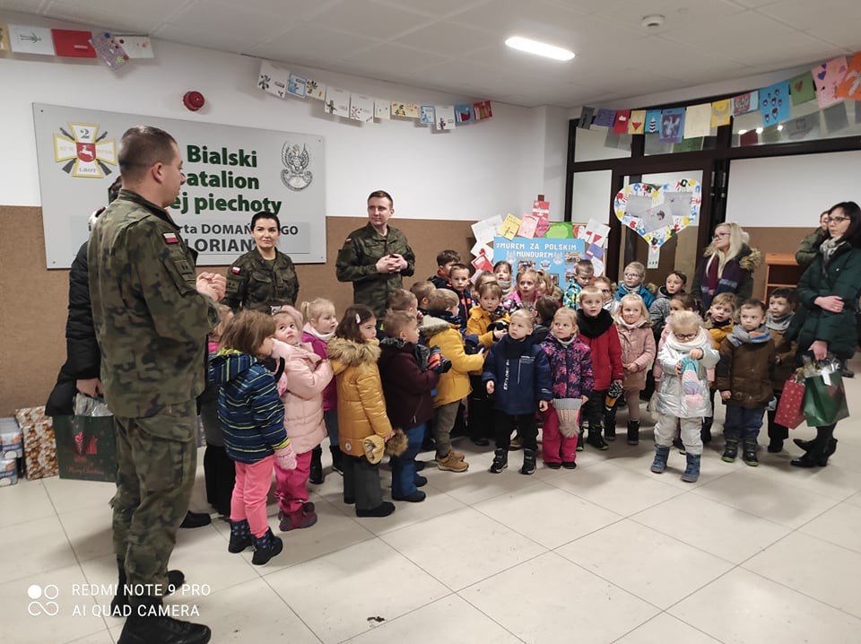 20 grudnia dzieci z III grupy 4 latków oraz z grupy 6 latków, w ramach akcji MEiN „Razem na święta” odwiedziły żołnierzy Wojska Obrony Terytorialnej, którym wręczyli własnoręcznie przygotowane pierniczki. Pierniczki w ramach tej akcji przygotowały też dzieci z grupy 5 latków oraz dzieci 5 i 6 letnie z przedszkola przy ul. Kolejowej. Celem akcji było zachęcanie do niesienia pomocy innym, budowanie wspólnot oraz więzi międzypokoleniowych.