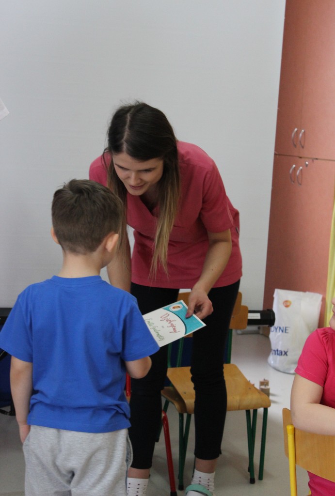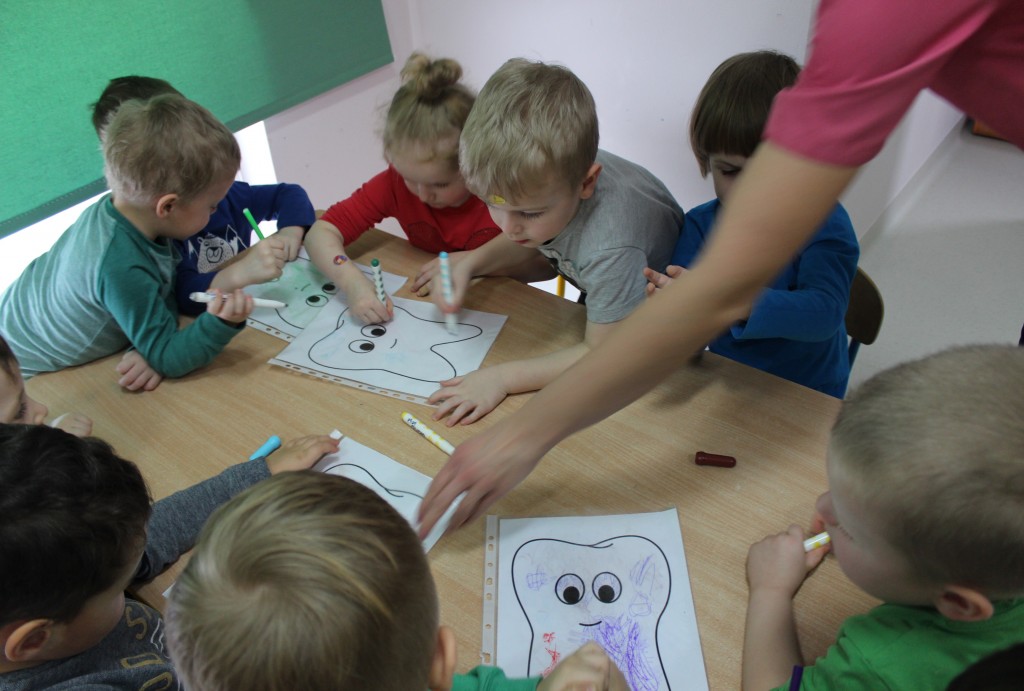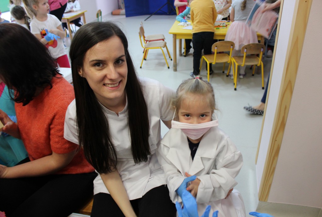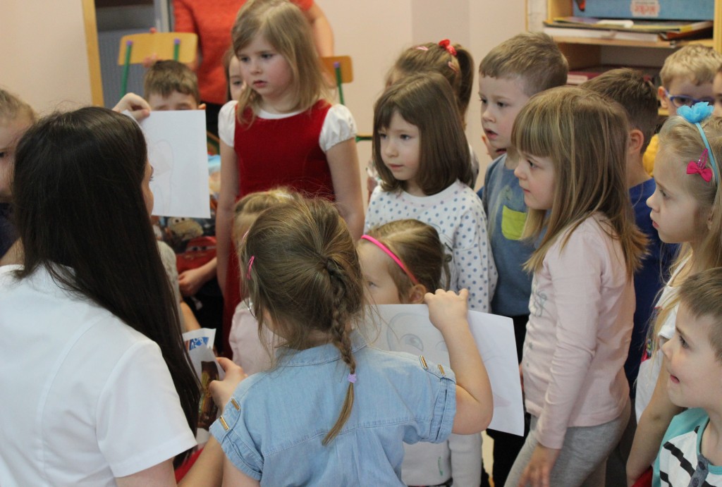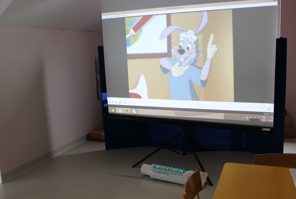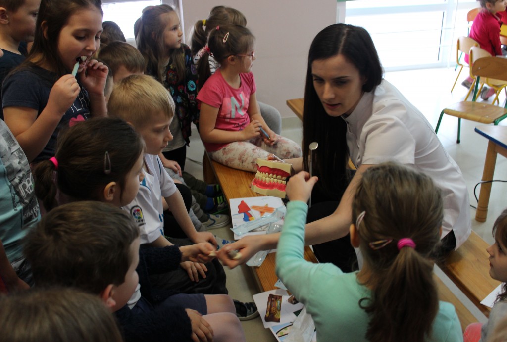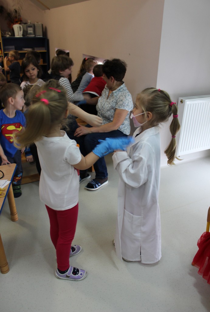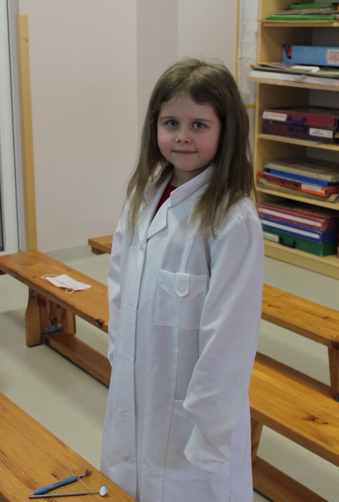Zajęcia bogate były w różnorodne działania. Na początek dzieci obejrzały krótką bajkę z dr Ząbkiem w roli głównej, następnie Pani doktor oraz Pani higienistka przeprowadziły krótką pogadankę na temat higieny jamy ustnej oraz wizyt kontrolnych u dentysty. Niesamowitą atrakcją okazała się prezentacja atrybutów stomatologa. Dzieci miały okazję przymierzyć fartuchy, rękawiczki, zapoznać się ze sprzętami i na chwilę zamienić w prawdziwych dentystów. Na koniec każdy otrzymał dyplom upamiętniający odwiedziny naszych gości w przedszkolu.