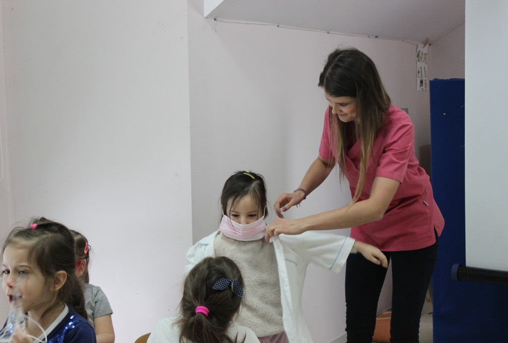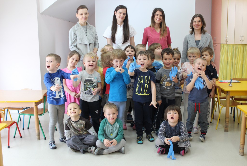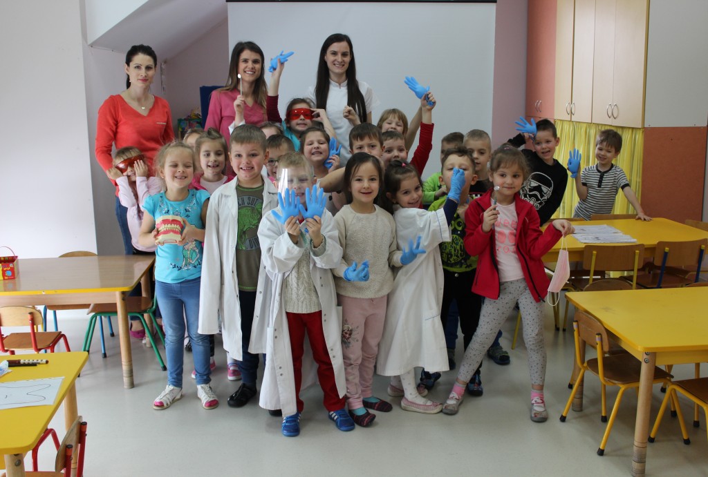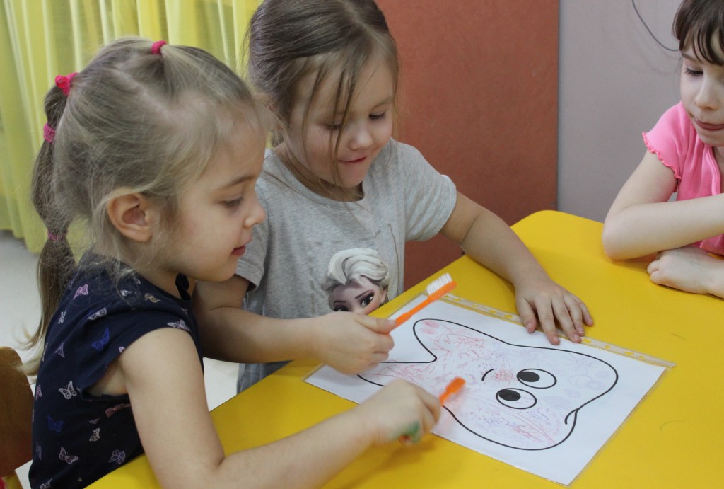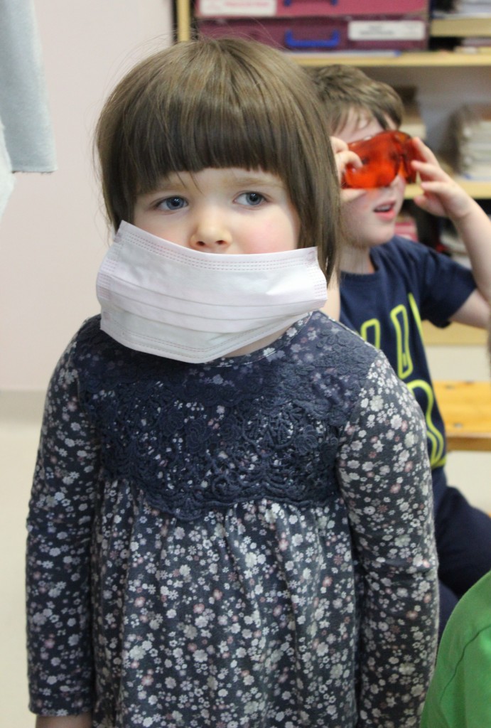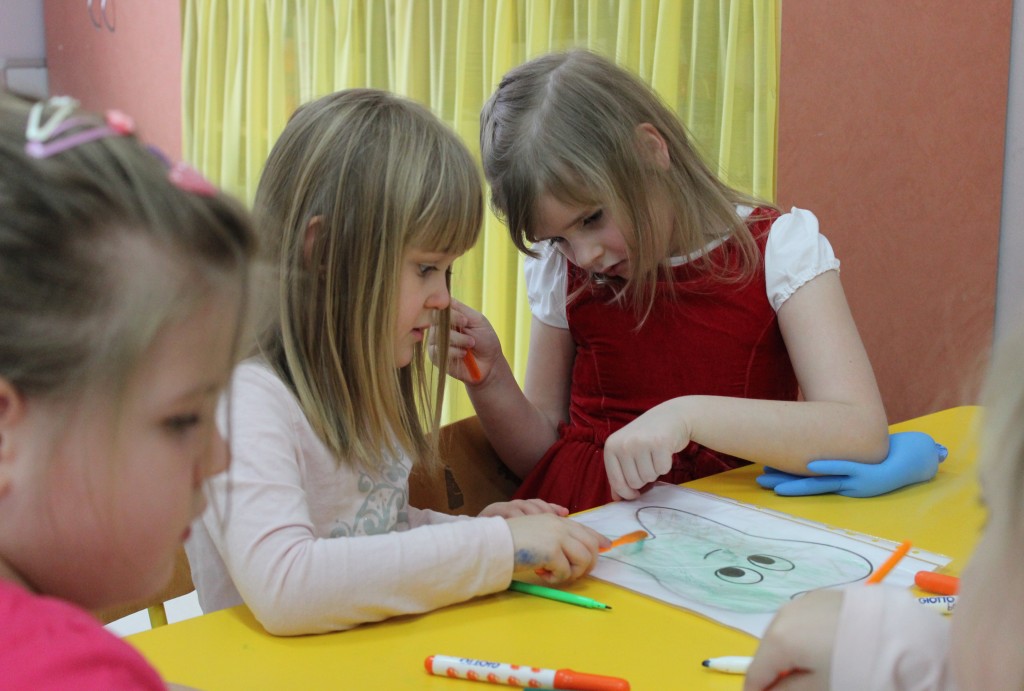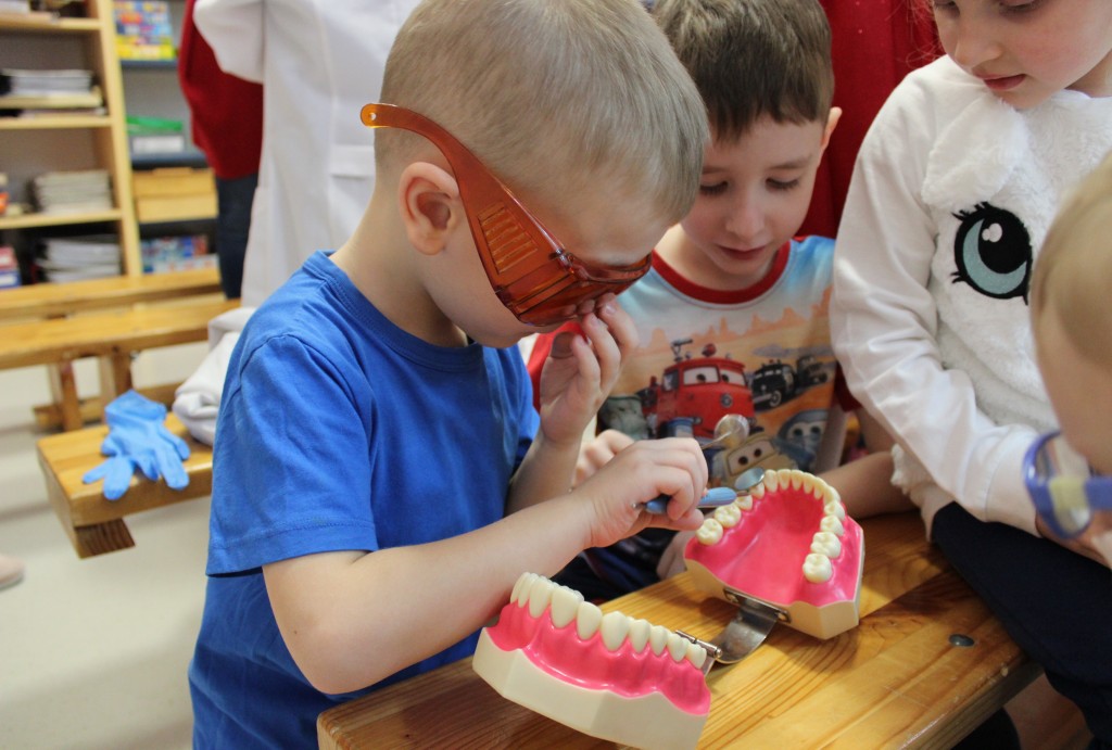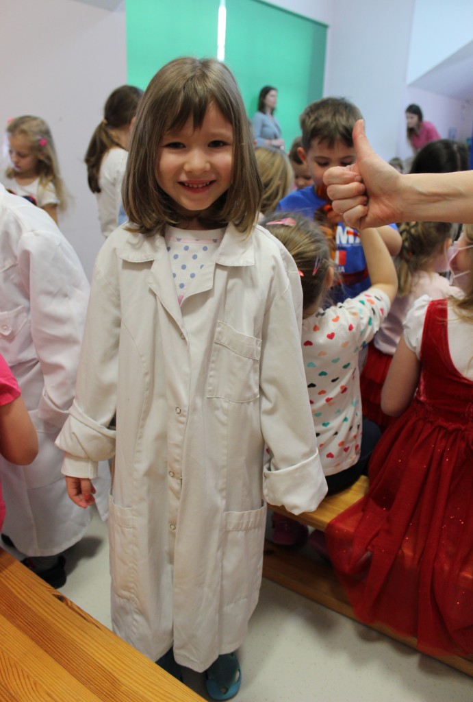 Zajęcia bogate były w różnorodne działania. Na początek dzieci obejrzały krótką bajkę z dr Ząbkiem w roli głównej, następnie Pani doktor oraz Pani higienistka przeprowadziły krótką pogadankę na temat higieny jamy ustnej oraz wizyt kontrolnych u dentysty. Niesamowitą atrakcją okazała się prezentacja atrybutów stomatologa. Dzieci miały okazję przymierzyć fartuchy, rękawiczki, zapoznać się ze sprzętami i na chwilę zamienić w prawdziwych dentystów. Na koniec każdy otrzymał dyplom upamiętniający odwiedziny naszych gości w przedszkolu.