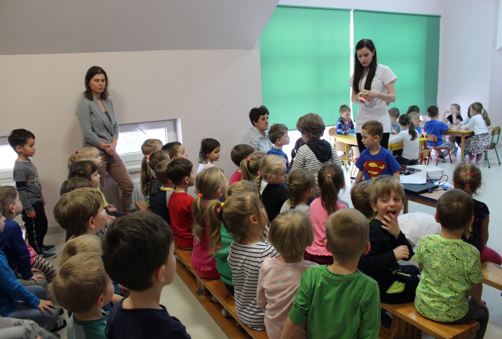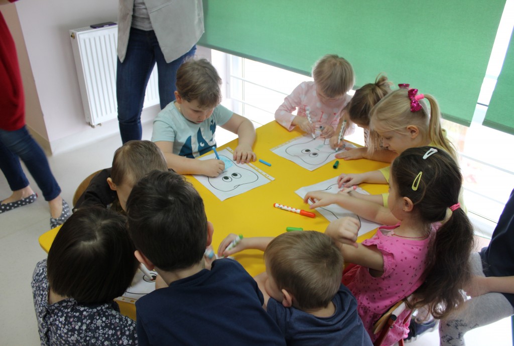 Wizyta Pani stomatolog oraz Pani higienistki stomatologicznej w przyjazny i atrakcyjny sposób przybliżyła dzieciom tematykę dbania o zęby i konieczności regularnych wizyt u dentysty. Nie mamy wątpliwości, że po tym spotkaniu żadnemu z Kubusiowych Przyjaciół nie będzie już straszne siadanie na fotelu dentystycznym.