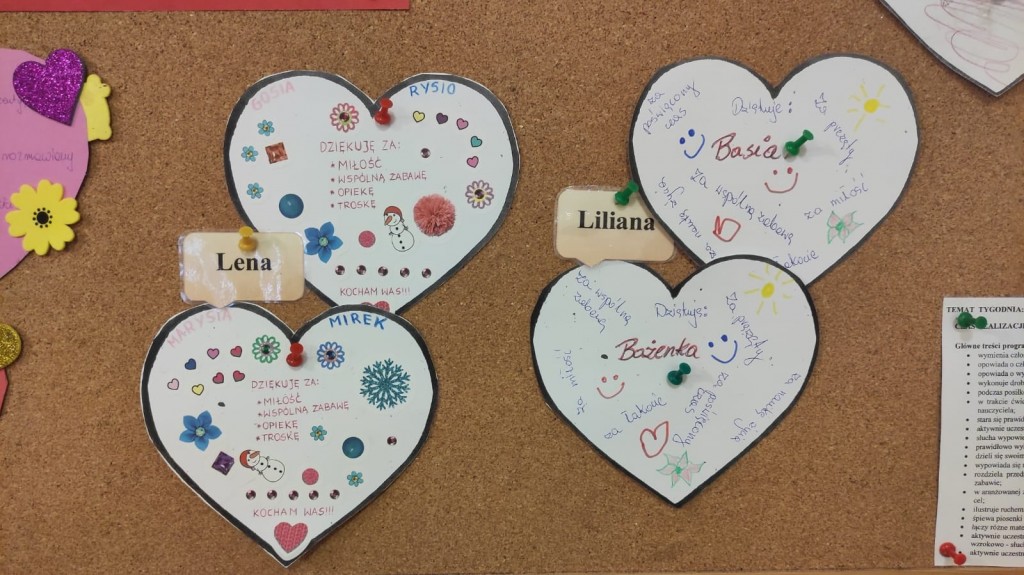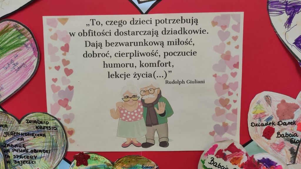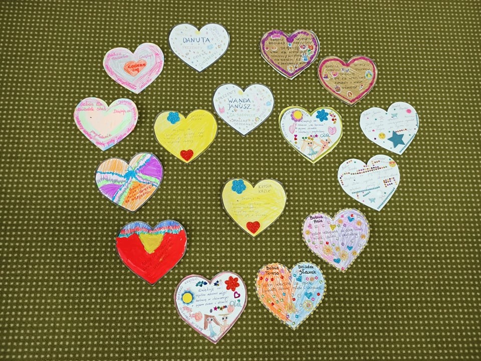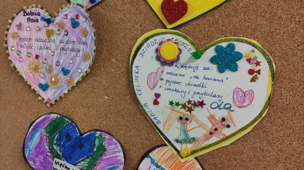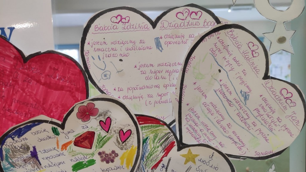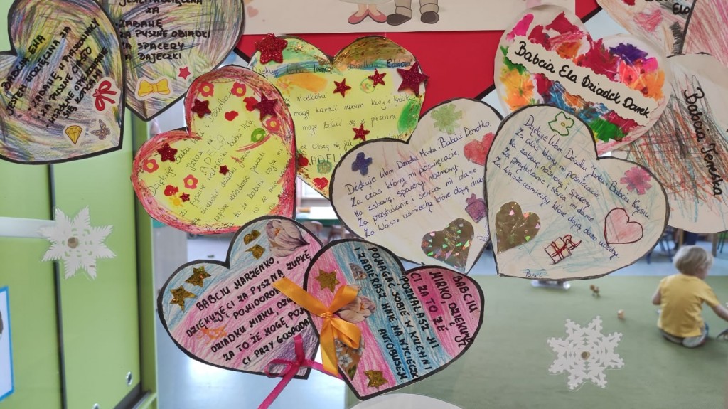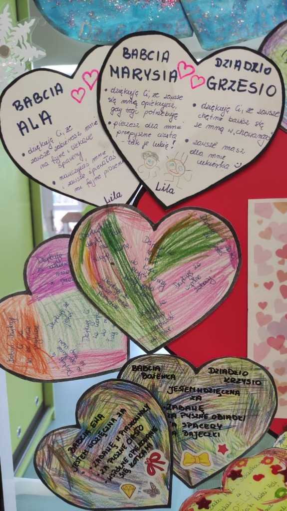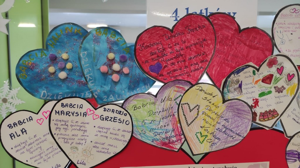Wdzięczność Babciom i Dziadkom za to wszystko co czynią swoim wnuczętom była myślą przewodnią świętowania Dnia Dobrego Słowa w styczniu. Serca wdzięczności przygotowane przez dzieci wraz z rodzicami są potwiedzeniem: bezwarunkowej miłości, dobroci, ciepła, cierpliwości, poczucia humoru, mądrości serca, pracowitości, niezliczonej ilości pomysłów na trudności, hojności czasu i wielu innych darów jakie otrzymaliśmy kiedyś lub nadal otrzymujemy od naszych kochanych Babć i Dziadków. Dziękujemy i życzymy wszelkiej pomyślności.