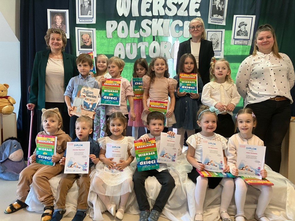 3 kwietnia odbył się konkurs recytatorski,w którym udział wzięło 13 dzieci przygotowanych przez rodziców. Występ na scenie, przed publicznością był dużym przeżyciem dla naszych przedszkolaków. Nasi dzielni recytatorzy prezentowali dziecięce wiersze polskich poetów. Wszystkie dzieci otrzymały pamiątkowe dyplomy oraz książkę z najpiękniejszymi wierszami Jana Brzechwy. Dziękujemy rodzicom za przygotowanie dzieci do występu, za wspólny czas. Dzieciom gratulujemy i życzymy kolejnych sukcesów.