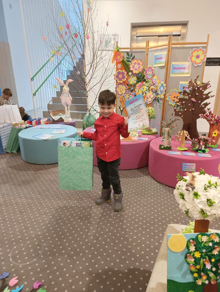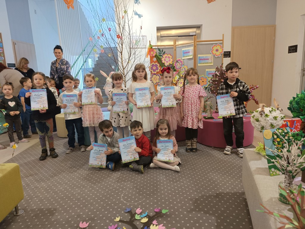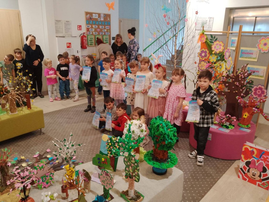 Liczna delegacja naszego przedszkola uczestniczyła w międzyprzedszkolnym konkursie plastycznym "Wiosenne drzewko" zorganizowanym przez Przedszkole Niepubliczne Fiku Miku. Nagrody i wyróznienia zdobyli Mila, Jaś D., Jaś R. i Dawid. Gratulujemy