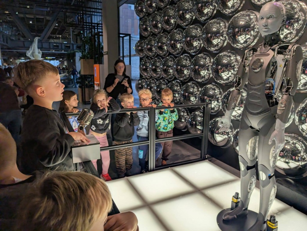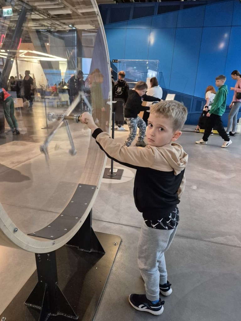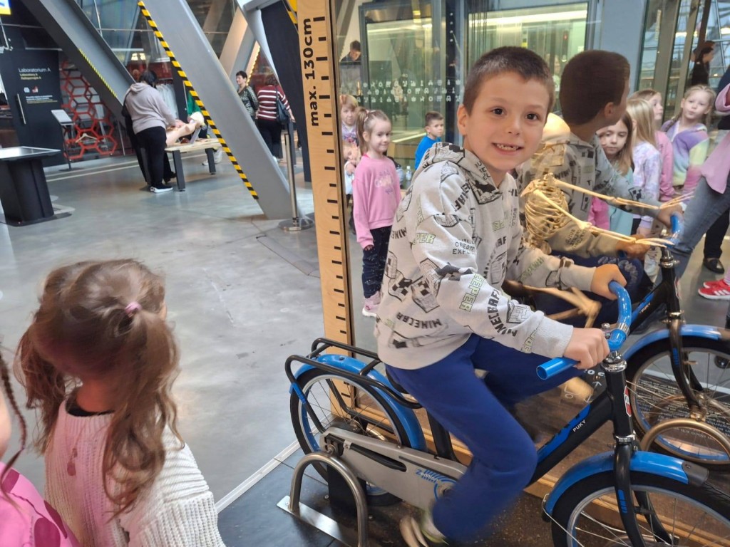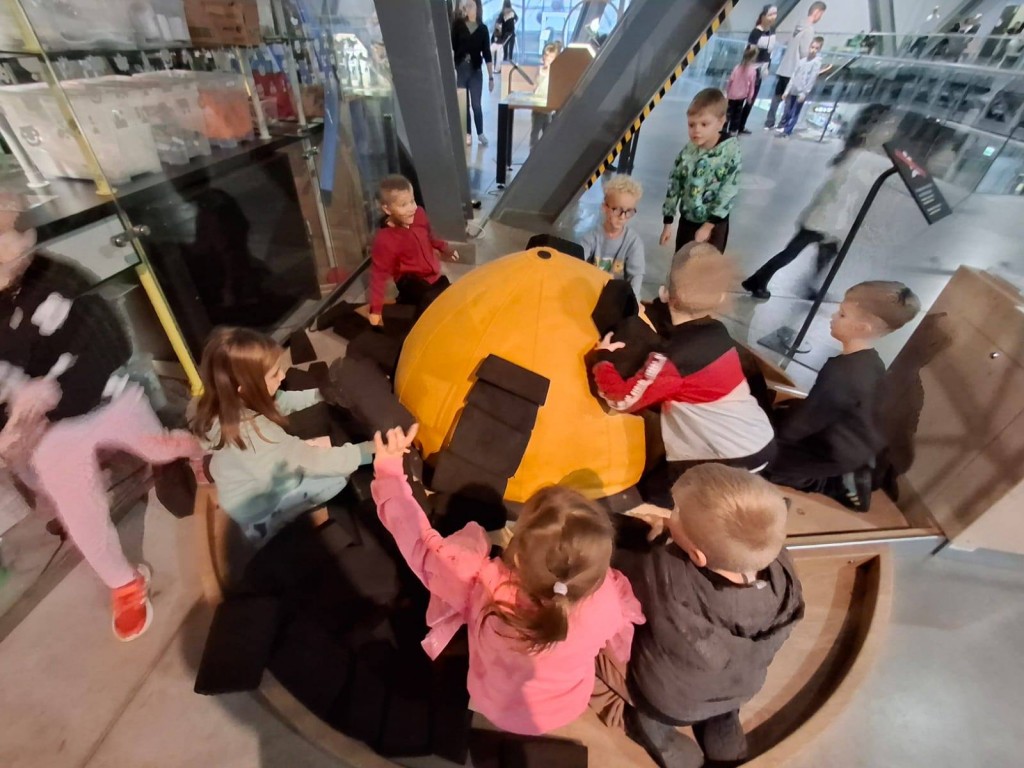 24 października dwie grupy 6 latków udały się na wycieczkę do Warszawy. Pierwszym punktem programu wycieczki był Teatr Muzyczny ROMA i spektakl "Dzielny Głębinek". Główny bohater pokazał nam jak ważna jest odwaga w dążeniu do realizacji swoich marzeń i wytrwałoaść w pokonywaniu trudności. Ciekawe dekoracje, barwne stroje oraz piękna gra aktorów i pełne ruchu oraz śpiewu układy taneczne zachwyciły wszystkich widzów. Przed spektaklem uczestniczyliśmy w lekcji teatralnej wzbogacającej nasze wiadomości na temat teatru. Kolejnym punktem wycieczki było Centrum Nauki KOPERNIK. Mieliśmy bardzo dużo czasu na zwiedzanie wystaw i różnordne doświadczenia. W ramach pobytu w ww. centrum byliśmy też w PLANETARIUM na filmie "Dinozaury - historia przetrwania". Film poprzedzony był przentacją gwieździstego nieba połączoną z ciekawym omówieniem gwiazdozbiorów. Ostatnim punktem wycieczki był obiad w restauracji WIEM Bistro. Pobyt w Warszawie był też okazją do obserwowania charakterystycznych budowli tj. Pałac Kultury i Nauki, Stadion Narodowy, wysokie wieżowce oraz ruchu ulicznego w dużym mieście.