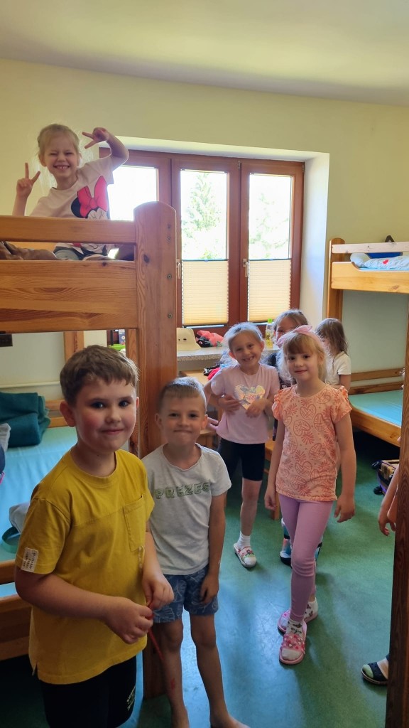 W dniach 11 - 12 czerwca, wsztystkie trzy grupy 6 latków przebywały na tzw. Zielonym Przedszkolu w urokliwych Serpelicach. Nie sposób opisać tego wszystkiego co tam się działo oraz tej ogromnej radości dzieci z tego, że mogą spędzić ze sobą poza przedszkolem 2 dni i jedną noc. Mieszkanie razem w pokoju, odwiedzanie kolegów i koleżanek w innych pokojach, wspóne sparcery, wycieczki, zabawy na świeżym powietrzu, leśne podchody, zabawy na plaży, zabawy przy ognisku, dyskoteka w piżamach, wycieczka melexami do Klepaczewa do Słodkiego Zakątka a przede wszystkim nastrój tego wyjazdu na długo pozostaną w pamięci naszych przedszkolaków.
